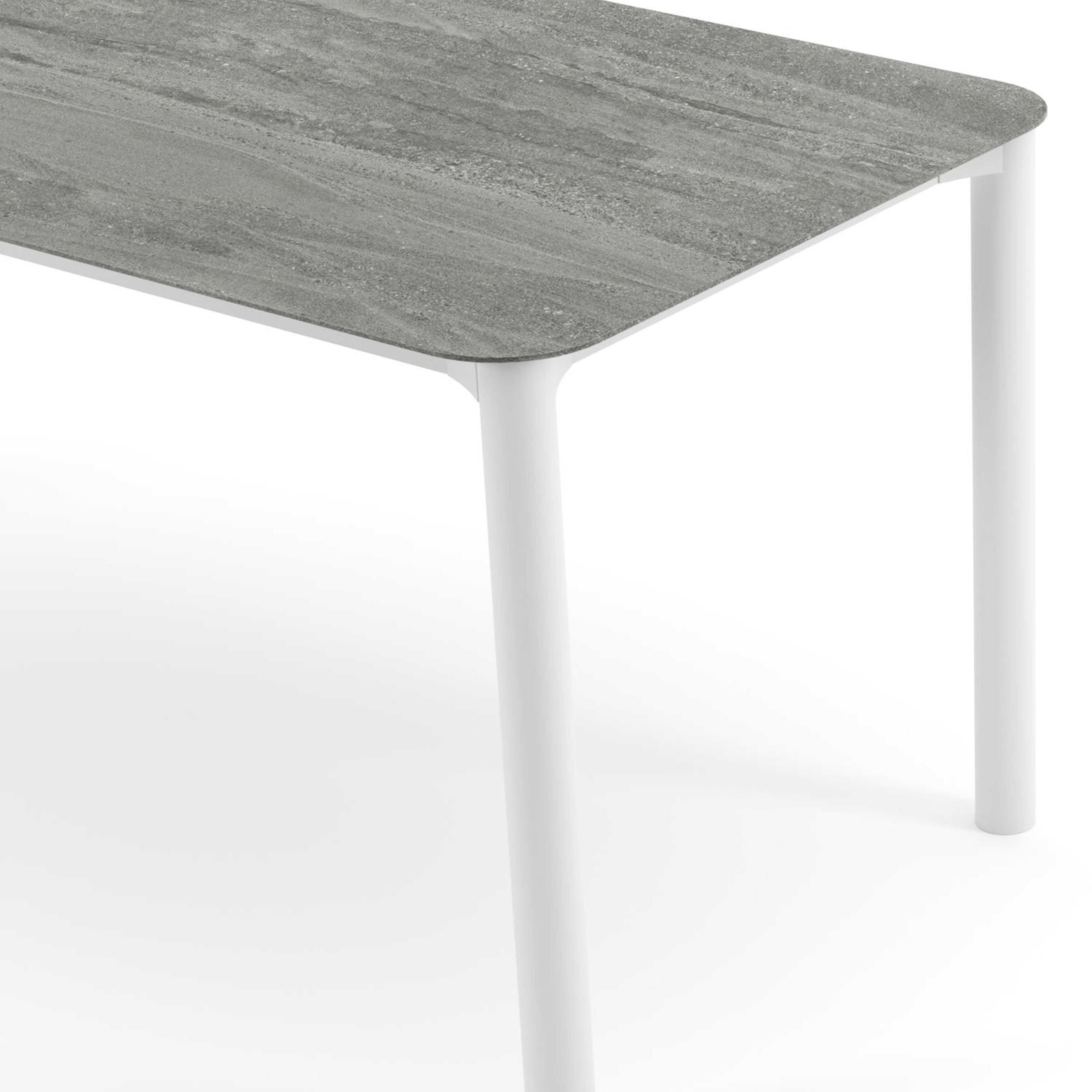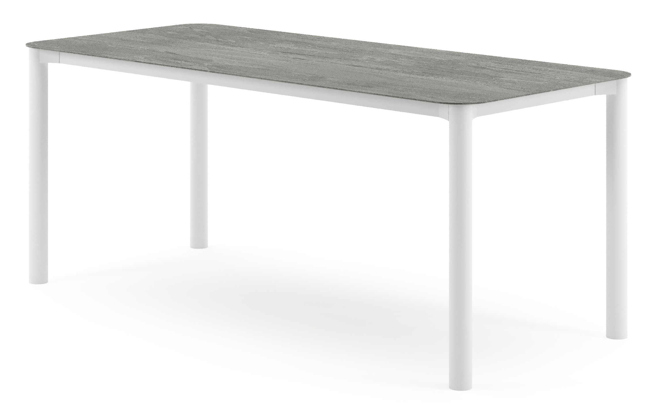 Orso tuintafel rechthoekig afgerond in wit aluminium en volkeramiek Aspen Grey - L 200 x B 80 x H 74.5 cm | Exterioo tuinmeubelen