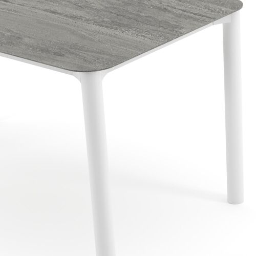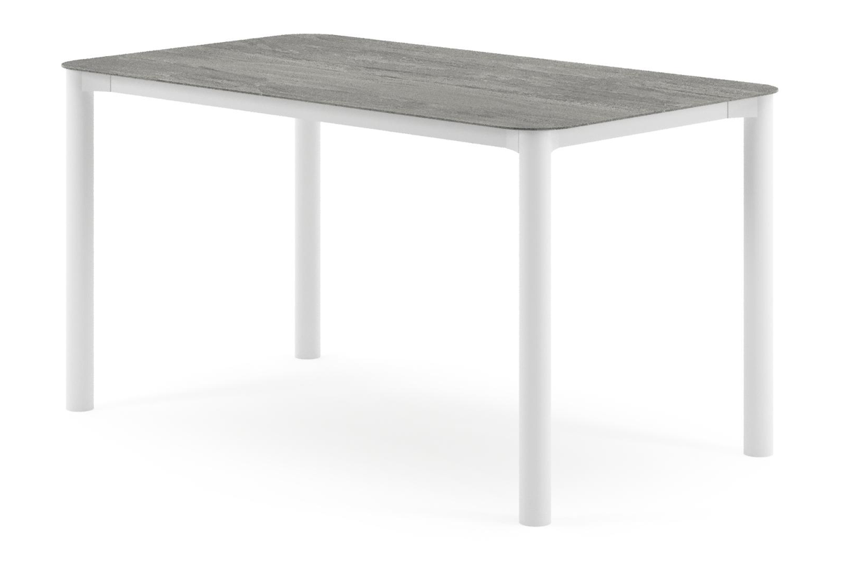 Orso tuintafel rechthoekig afgerond in wit aluminium en volkeramiek Aspen Grey - L 140 x B 80 x H 74.5 cm | Exterioo