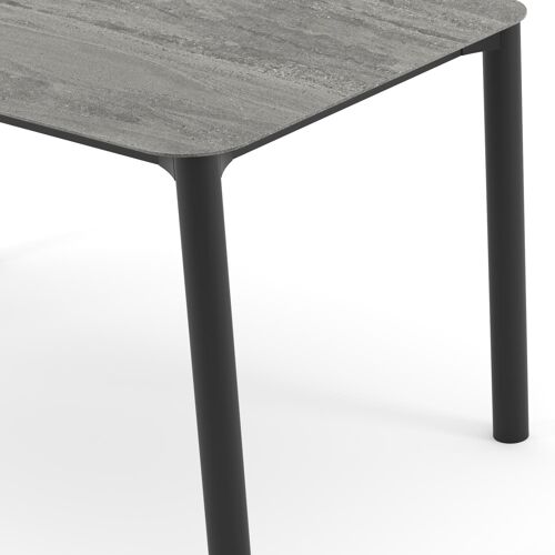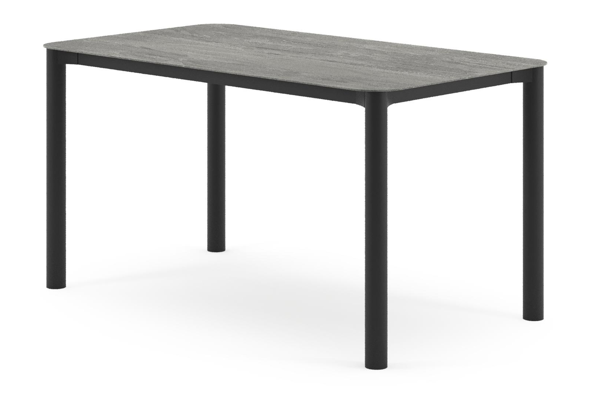Orso tuintafel rechthoekig afgerond in zwart aluminium en volkeramiek Aspen Grey - L 140 x B 80 x H 74.5 cm | Exterioo