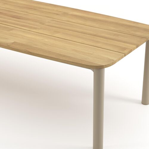 Orso tuintafel bootvorm in beige aluminium en teak - L 315 x B 115 x H 74.5 cm | Exterioo