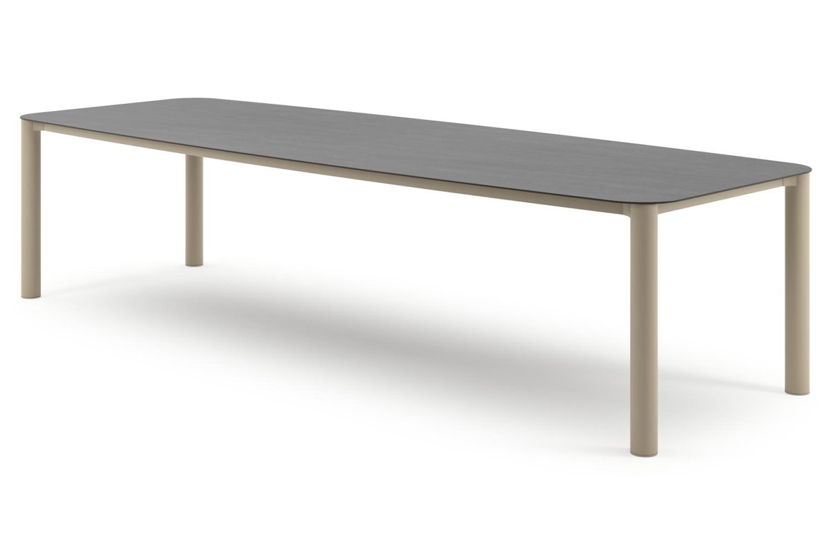 Orso tuintafel bootvorm in beige aluminium en volkeramiek Basalt Black - L 315 x B 115 x H 74.5 cm | Exterioo