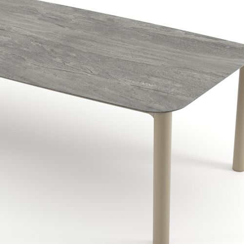 Orso tuintafel bootvorm in beige aluminium en volkeramiek Aspen Grey - L 315 x B 115 x H 74.5 cm | Exterioo