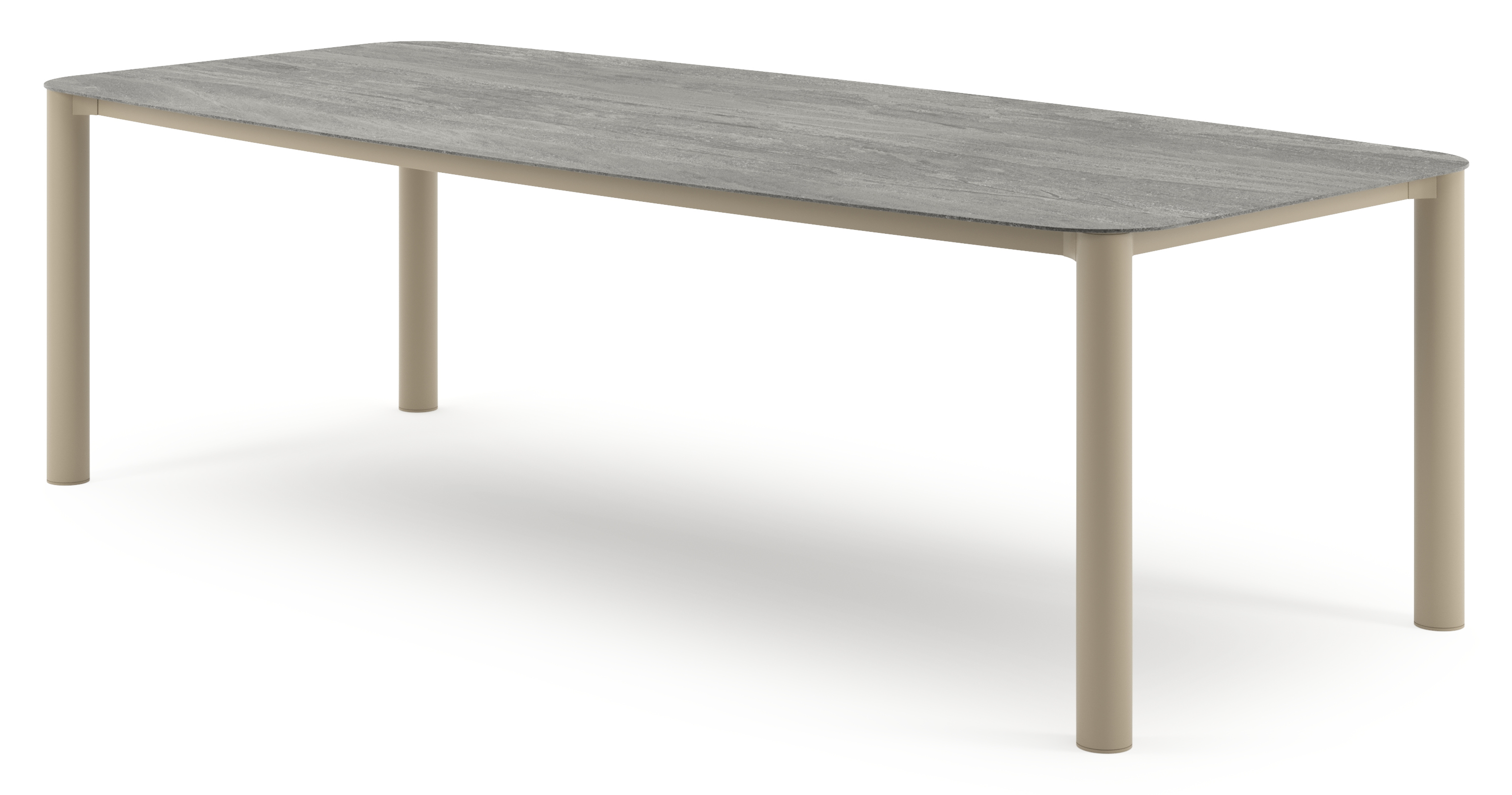 Orso tuintafel bootvorm in beige aluminium en volkeramiek Aspen Grey - L 255 x B 115 x H 74.5 cm | Exterioo tuinmeubelen