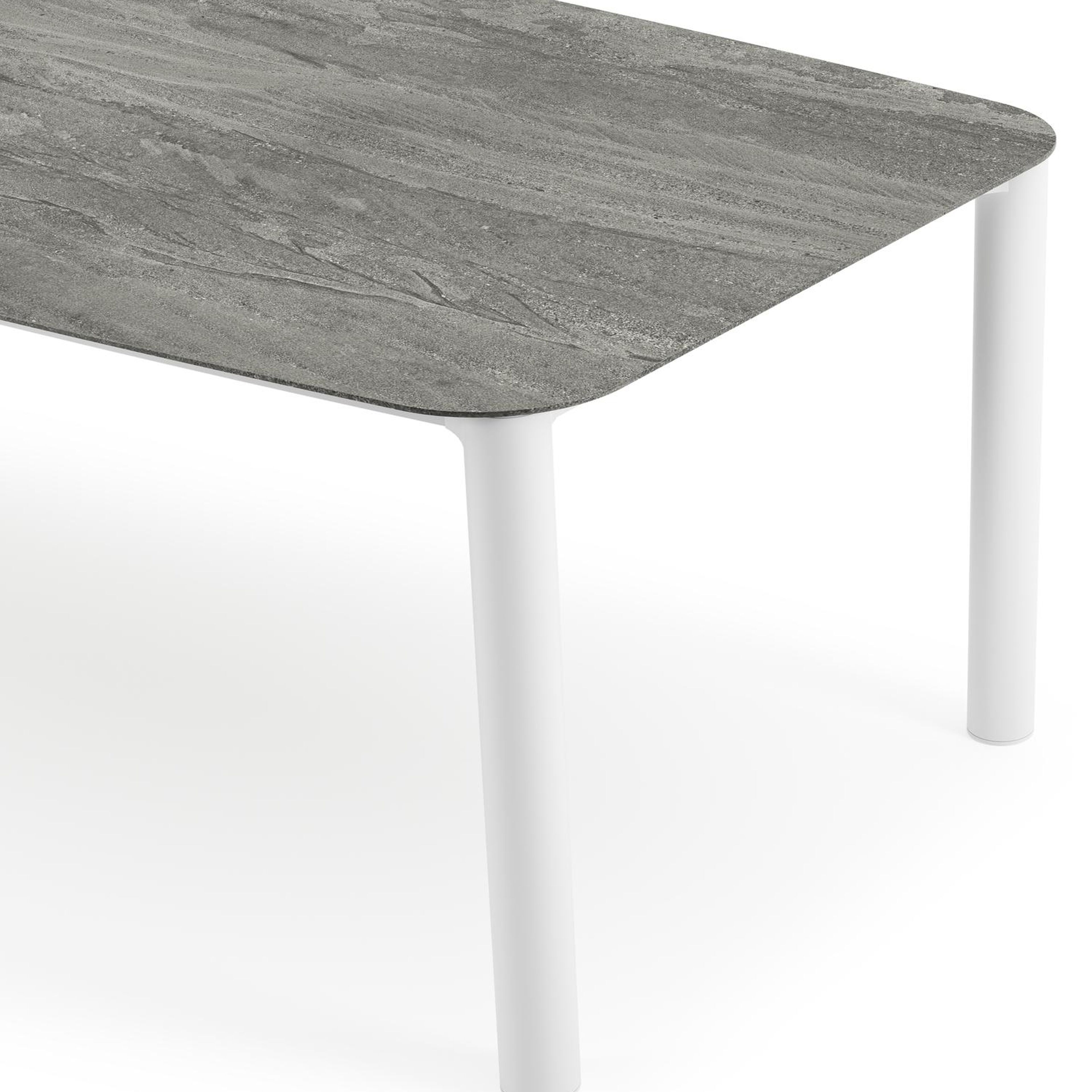 Orso tuintafel bootvorm in wit aluminium en volkeramiek Aspen Grey - L 255 x B 115 x H 75 cm | Exterioo tuinmeubelen