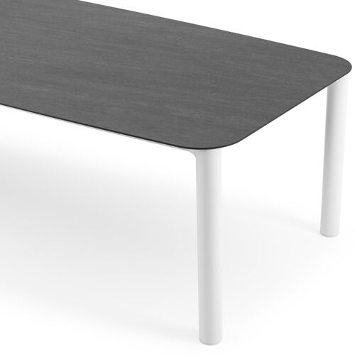 Orso tuintafel bootvorm in wit aluminium en volkeramiek Basalt Black - L 315 x B 115 x H 75 cm | Exterioo
