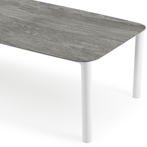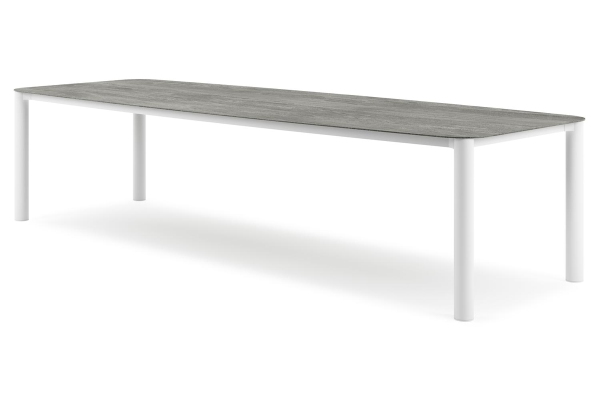 Orso tuintafel bootvorm in wit aluminium en volkeramiek Aspen Grey - L 315 x B 115 x H 75 cm | Exterioo