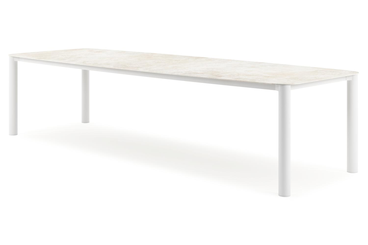 Orso tuintafel bootvorm in wit aluminium en volkeramiek Rapolano L 315 x B 115 cm | Exterioo