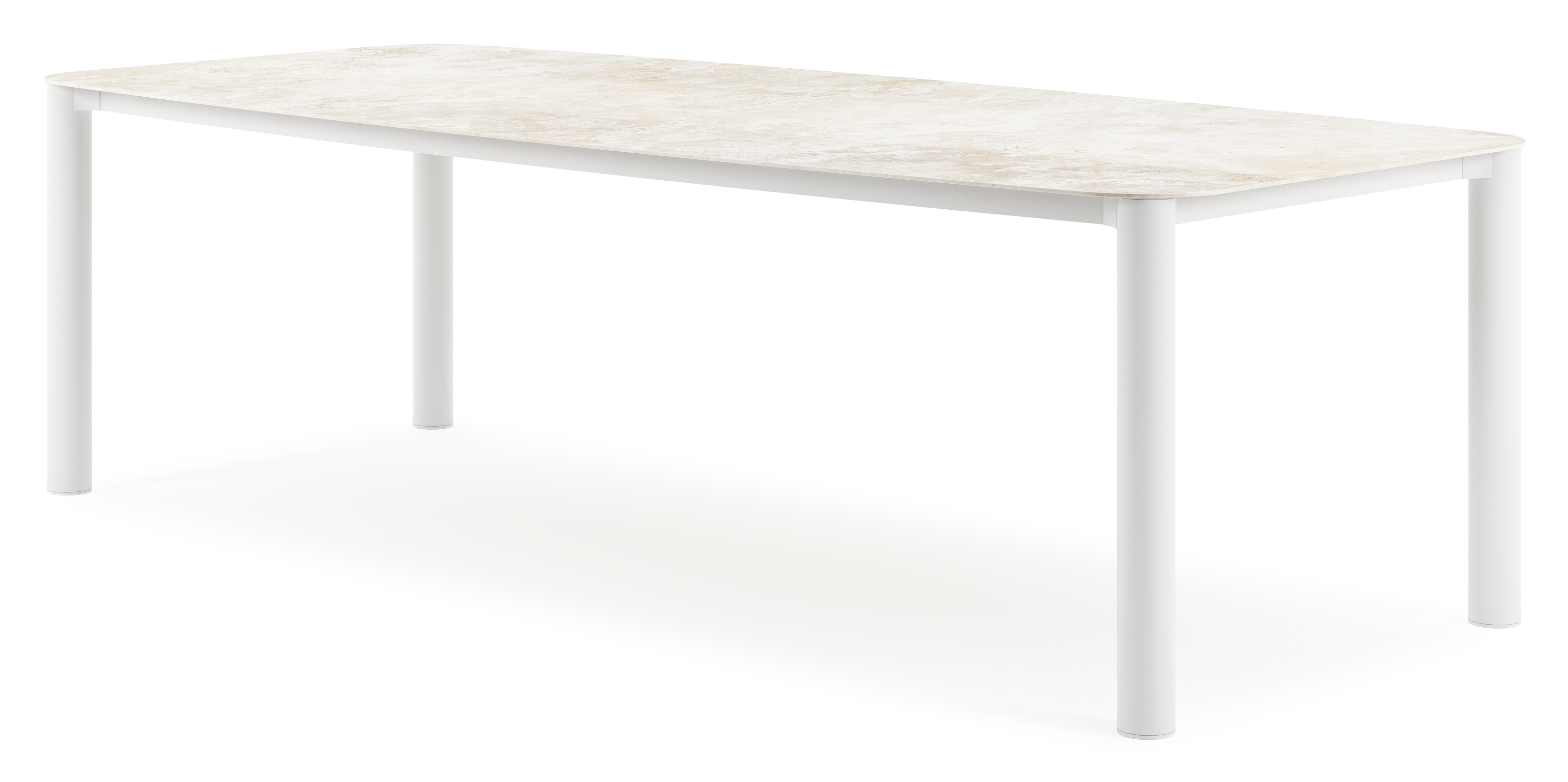 Orso tuintafel bootvorm in wit aluminium en volkeramiek Rapolano L 255 x B 115 cm | Exterioo tuinmeubelen