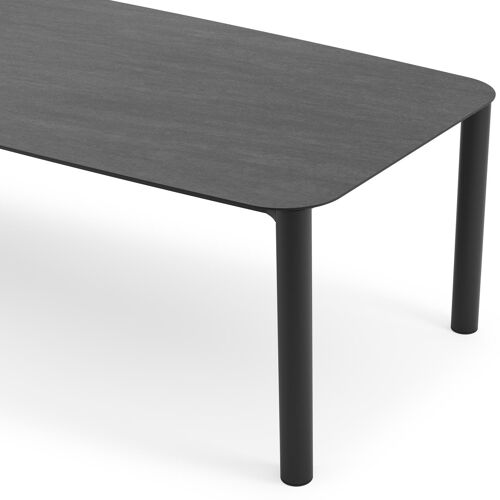Orso tuintafel bootvorm in zwart aluminium en volkeramiek basalt black - L 315 x B 115 x H 75 cm | Exterioo