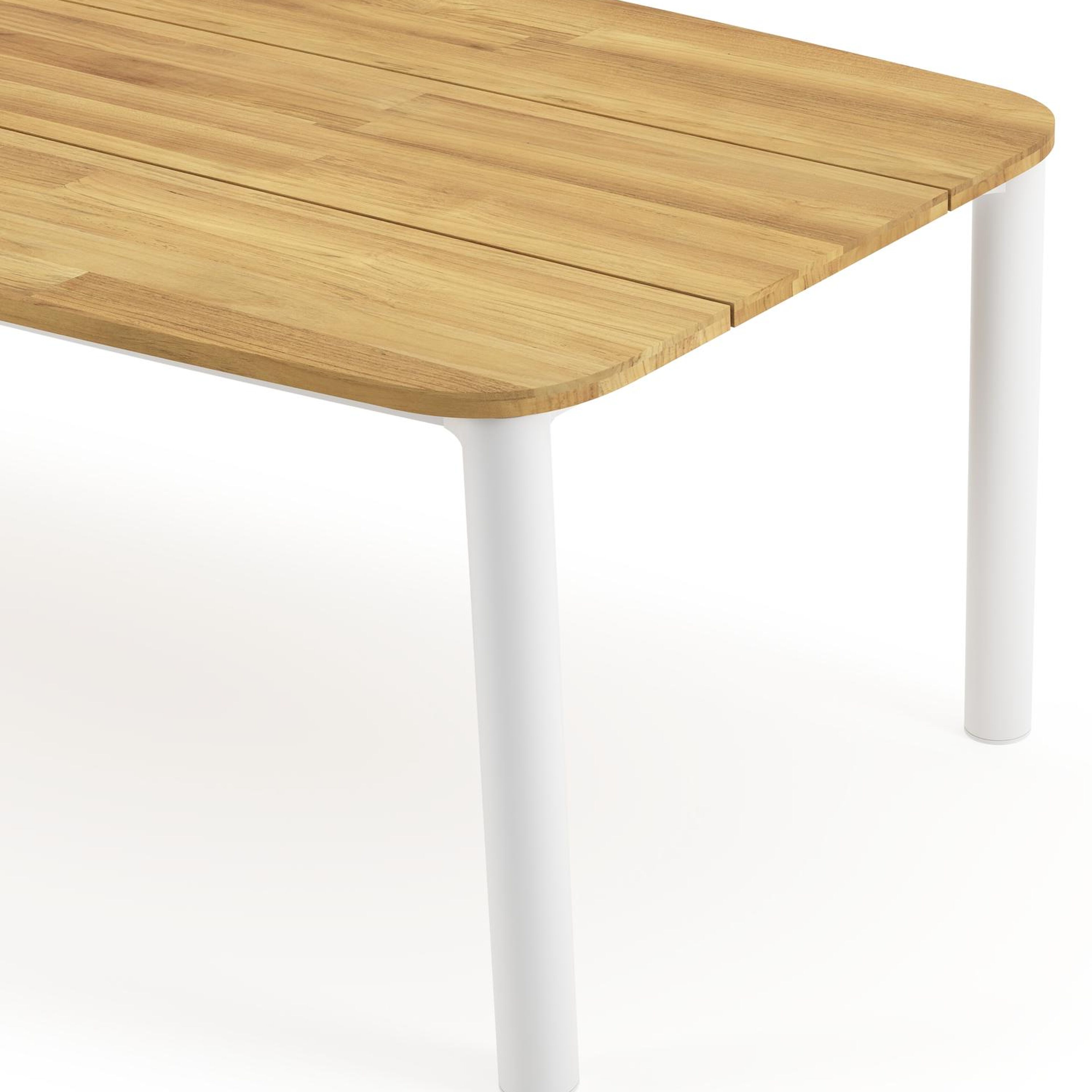 Een tafelblad uit teak staat gelijk aan bijzondere kwaliteit en natuurlijk design. Teak is een kwalitatieve houtsoort gekenmerkt door zijn hardheid. Aangezien hout leeft, kan de structuur of kleur licht anders zijn dan op het beeld weergegeven.