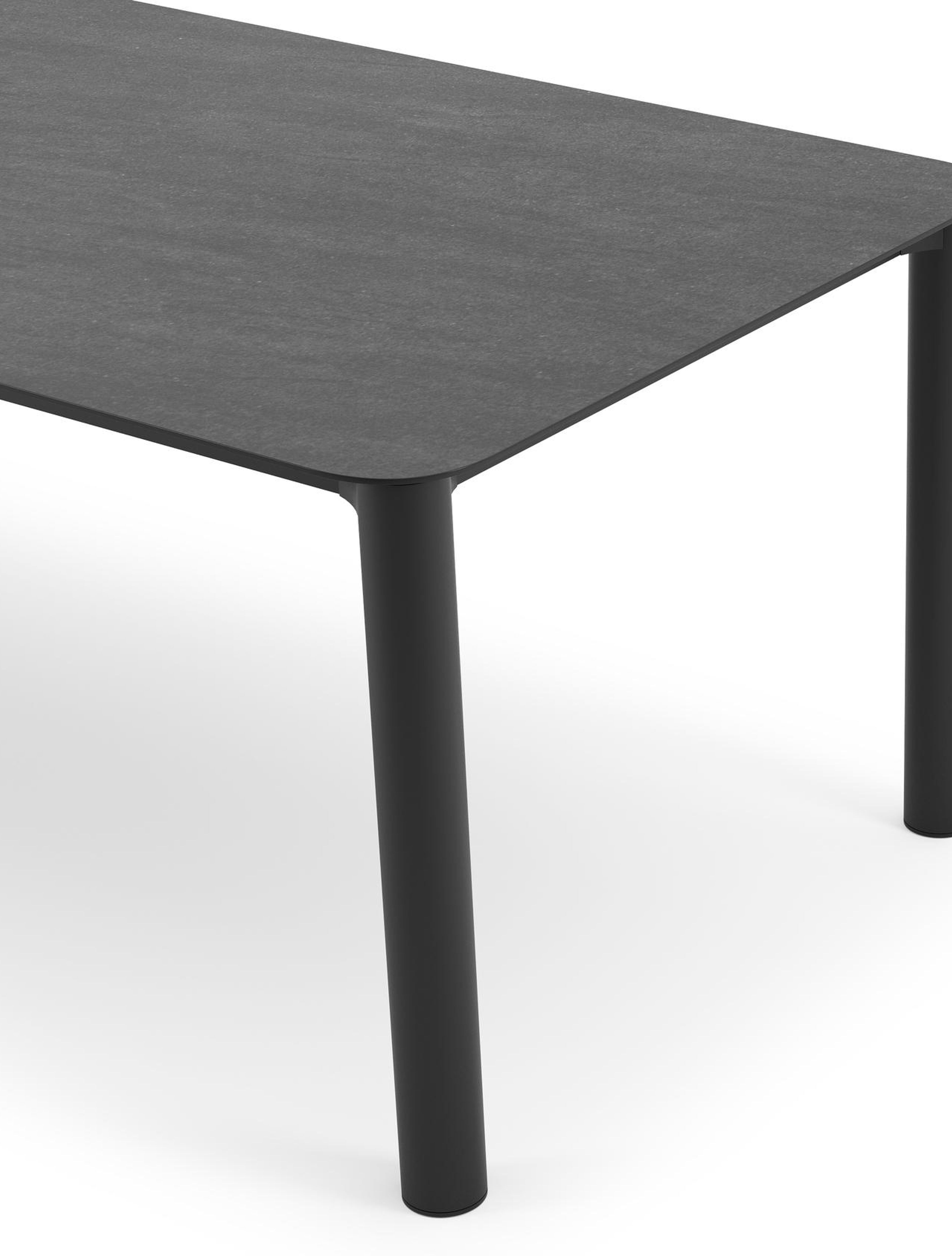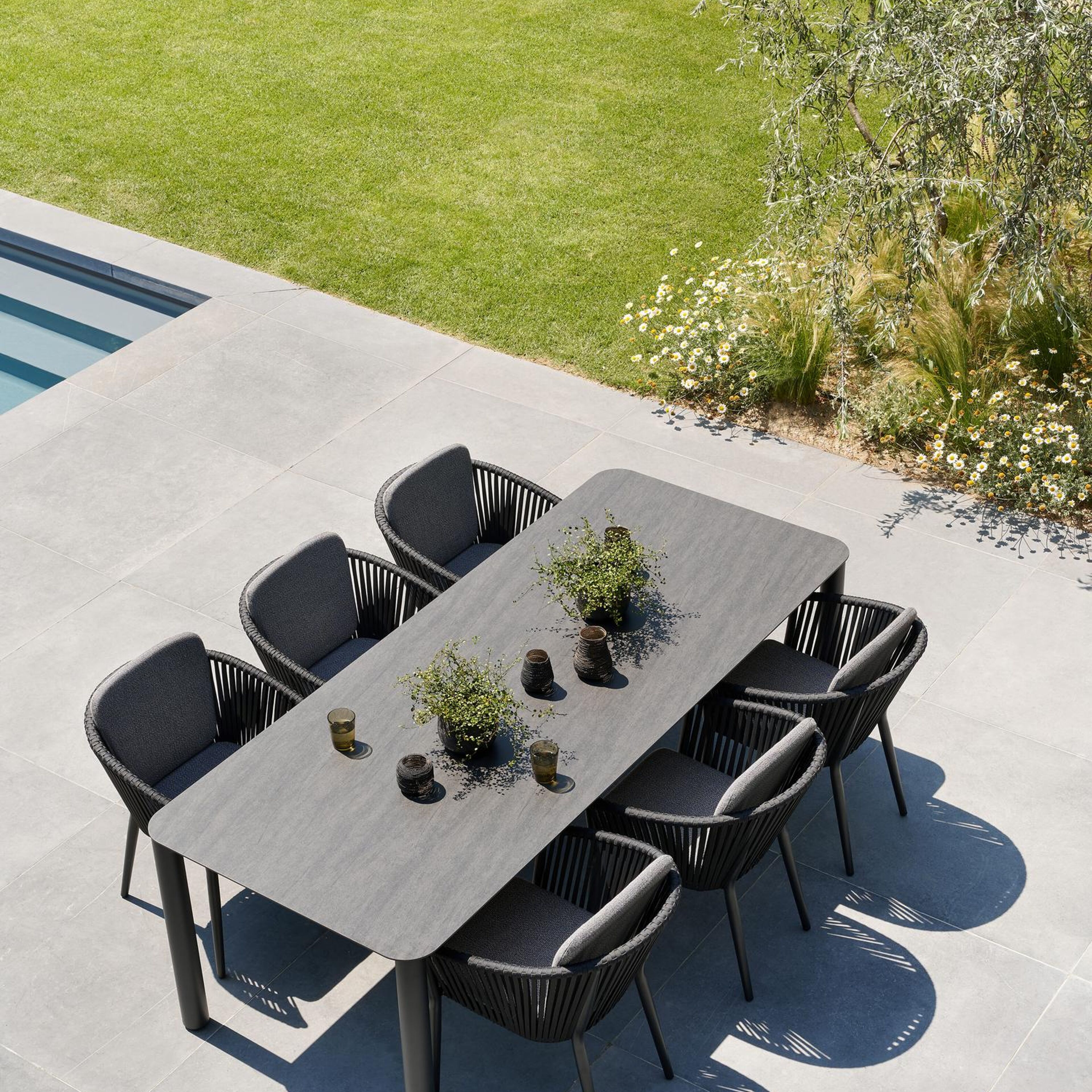 De Orso tuintafel, is een ware blikvanger voor je buitenruimte. De ronde poten en het afgerond rechthoekig tafelblad, waarbij de zijden subtiel over de poten zweeft, geeft de tafel een hedendaags natuurlijk design.