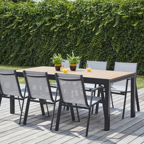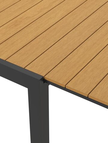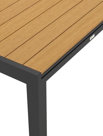 Een tafelblad uit polywood heeft de look van hout, maar is eigenlijk kunststof. Je geniet van de charmante uitstraling van hout, maar het barst of scheurt niet en behoudt jarenlang zijn unieke bruine houtlook. Opgelet: polywood is een synthetisch materiaal dat niet resistent is tegen hitte. Warmte - denk aan zonlicht dat door glazen schijnt - kan het materiaal beschadigen. Gebruik dus altijd een onderzetter of dienblad wanneer je glaswerk op je meubel plaatst.Beleef geweldige buitenmomenten met de Oviedo verlengbare tuintafel aan een scherpe prijs.