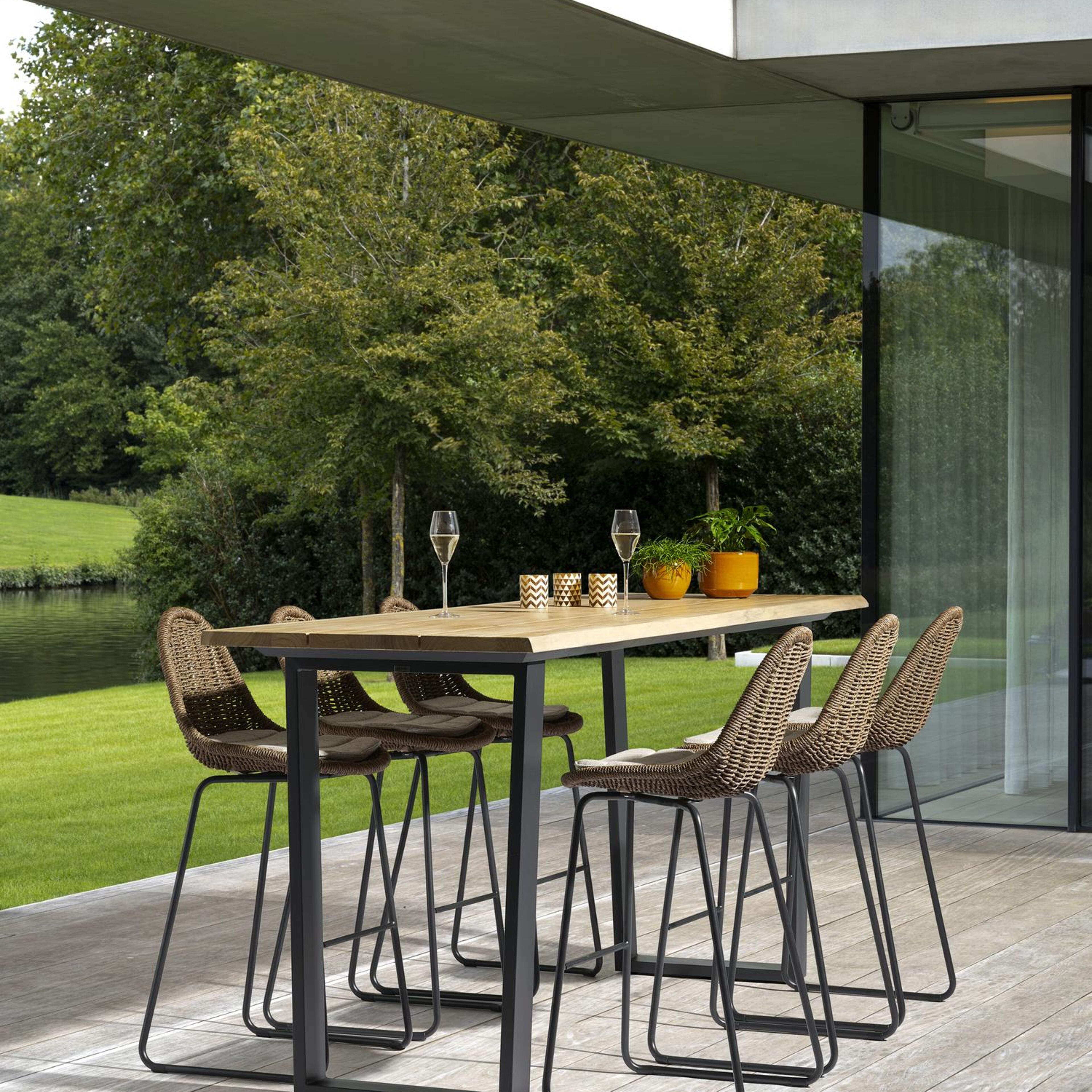 Pagino barstoel in zwart aluminium en bruin wicker | Exterioo tuinmeubelen