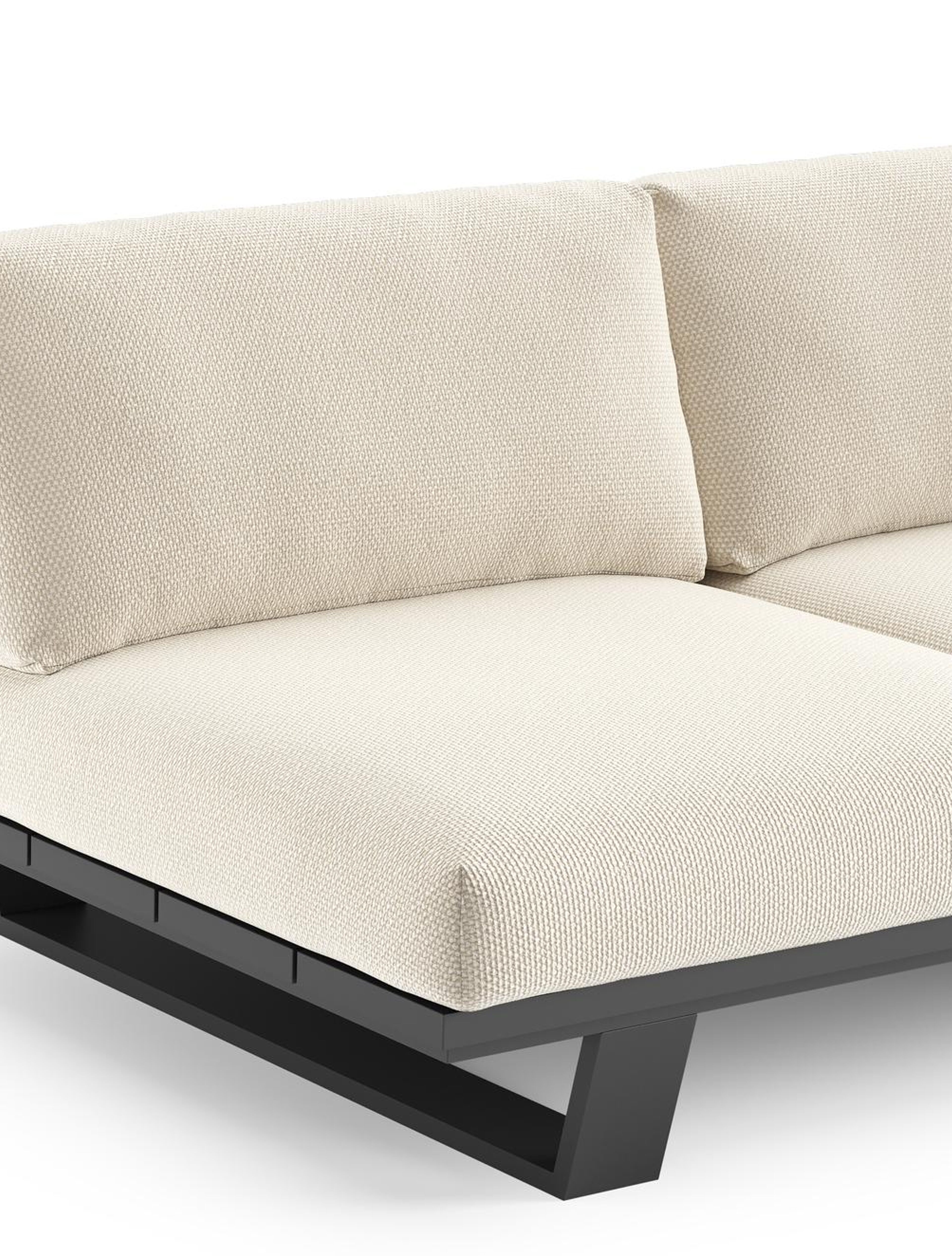 Pagino loungebank in zwart aluminium met althea off white all weather cosytica kussen | Exterioo tuinmeubelen