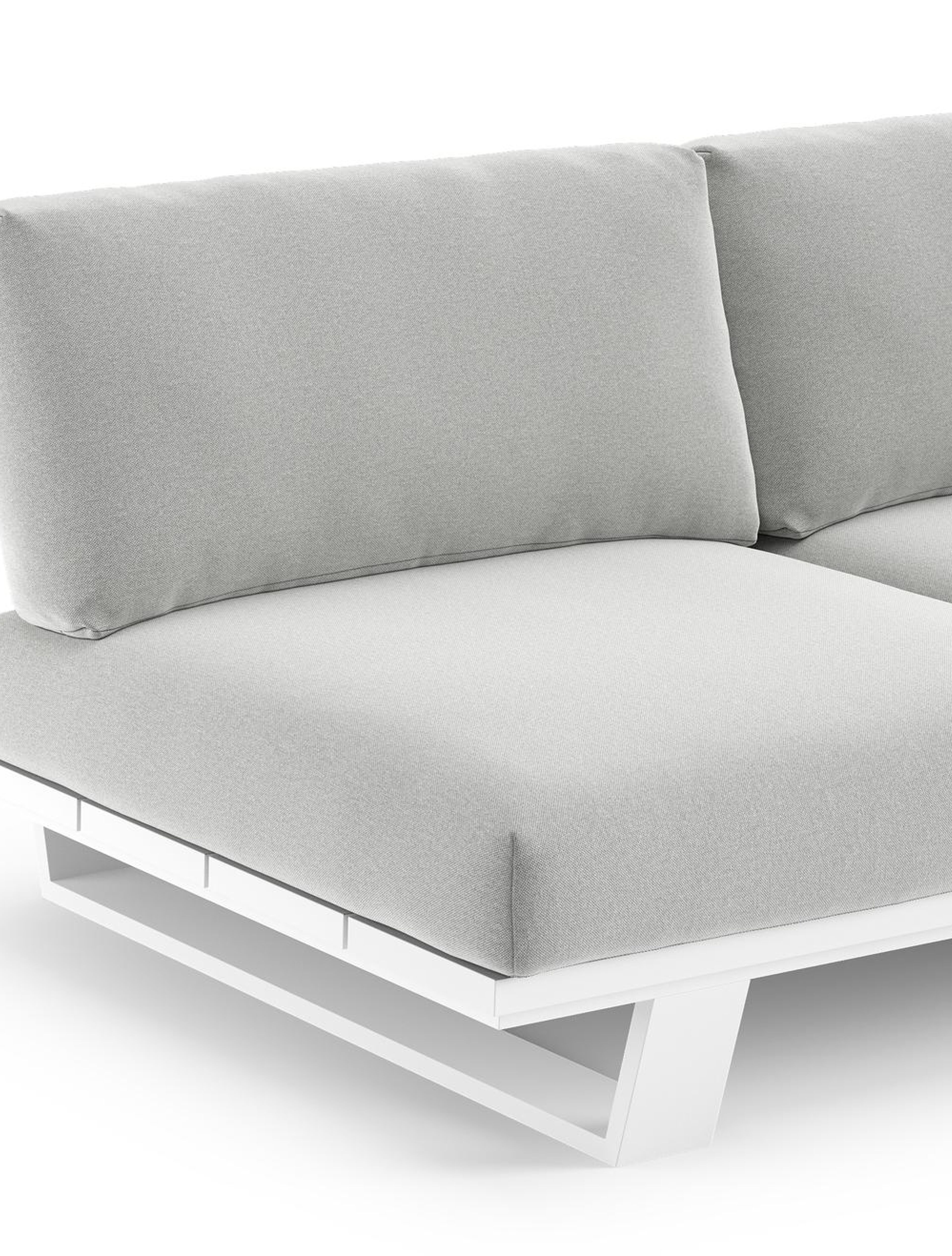 Pagino loungehoek in wit aluminium met natte grey chine all weather sunbrella® luxe kussen | Exterioo tuinmeubelen