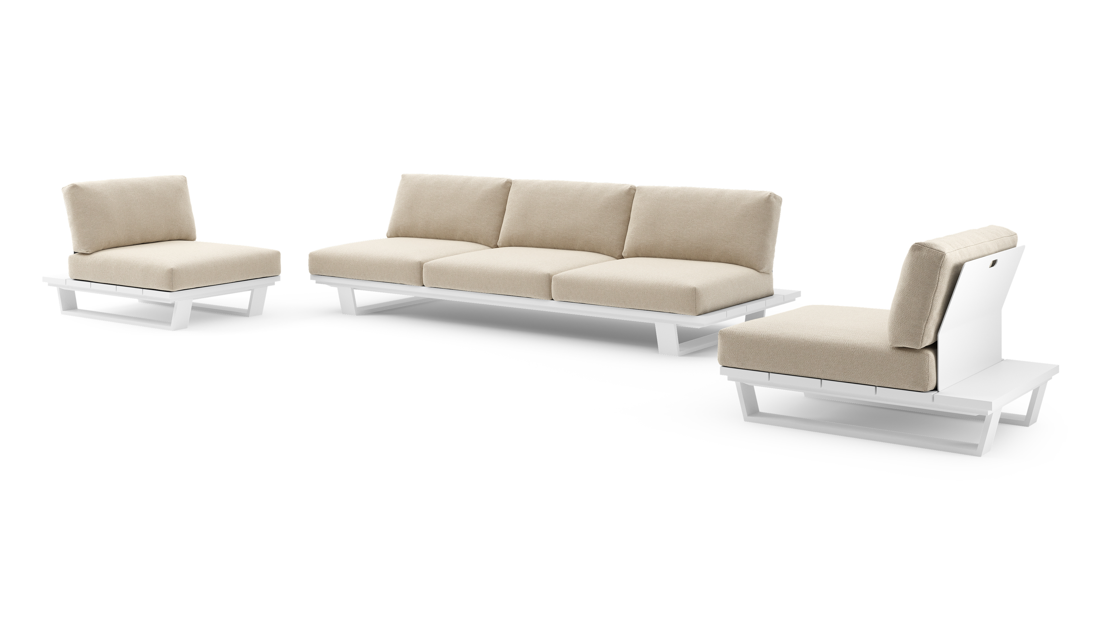 Pagino loungeset in wit aluminium met althea chalk all weather cosytica kussen | Exterioo tuinmeubelen