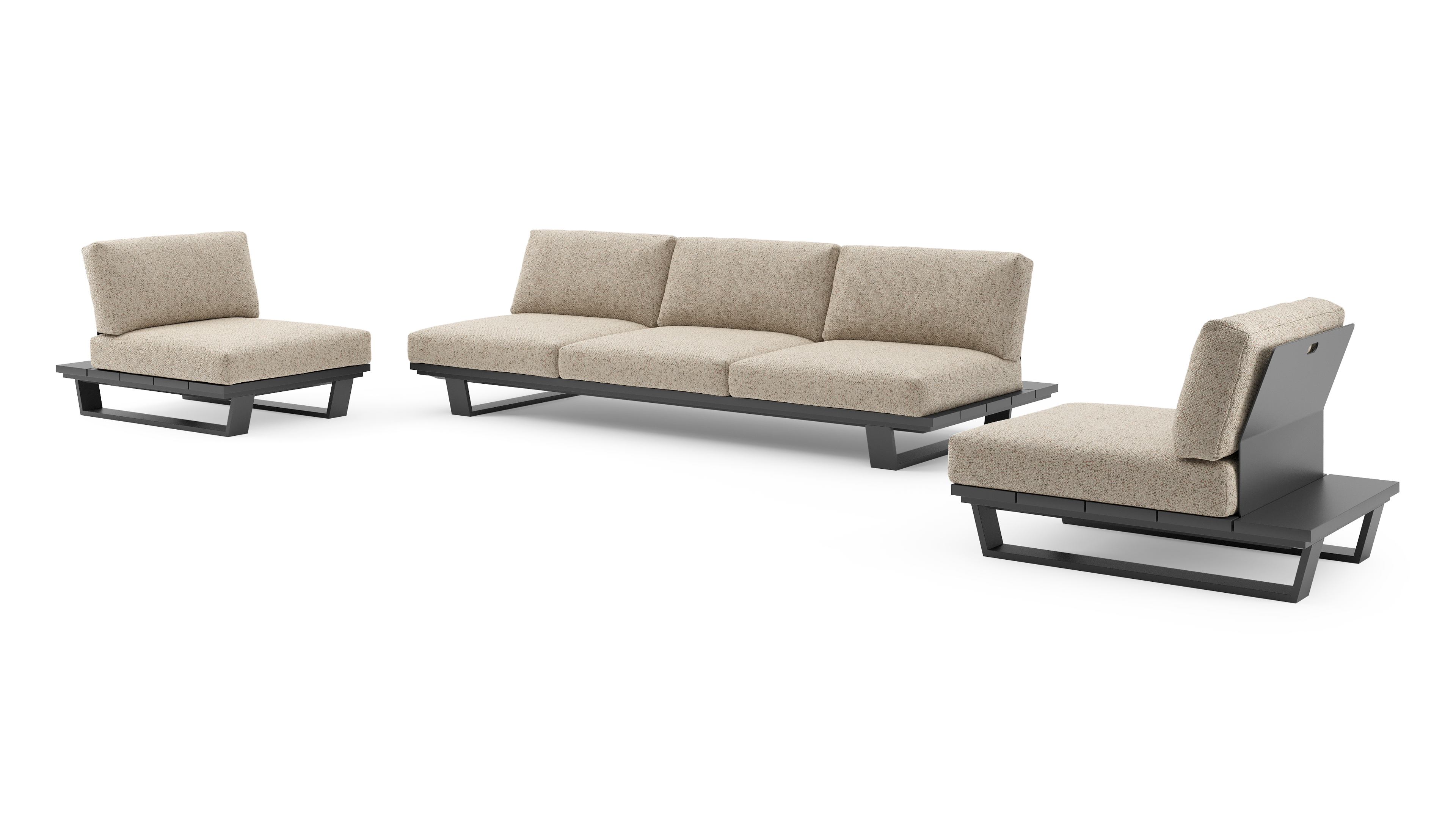 Pagino loungeset in zwart aluminium met bora jungle all weather cosytica kussen | Exterioo tuinmeubelen