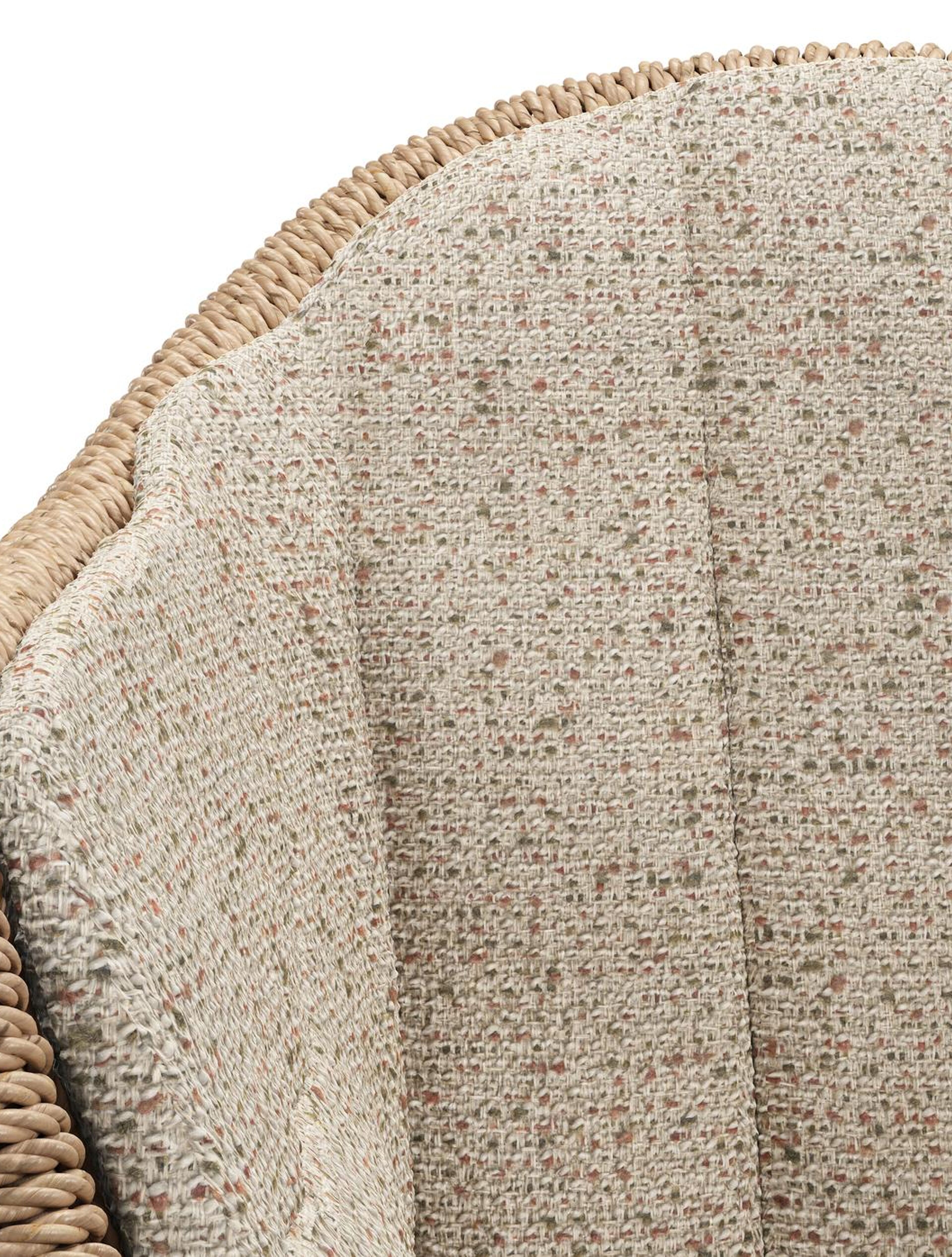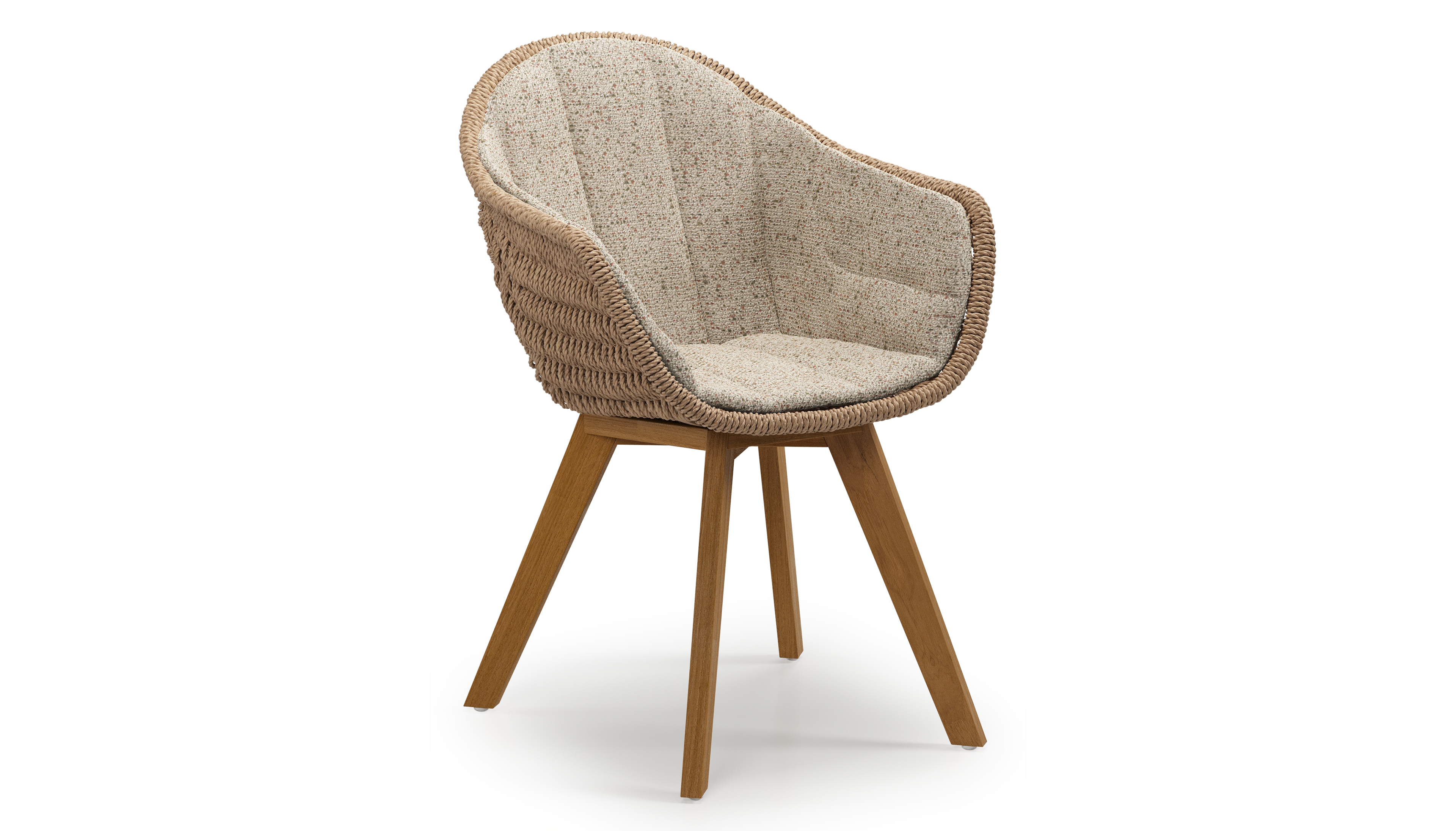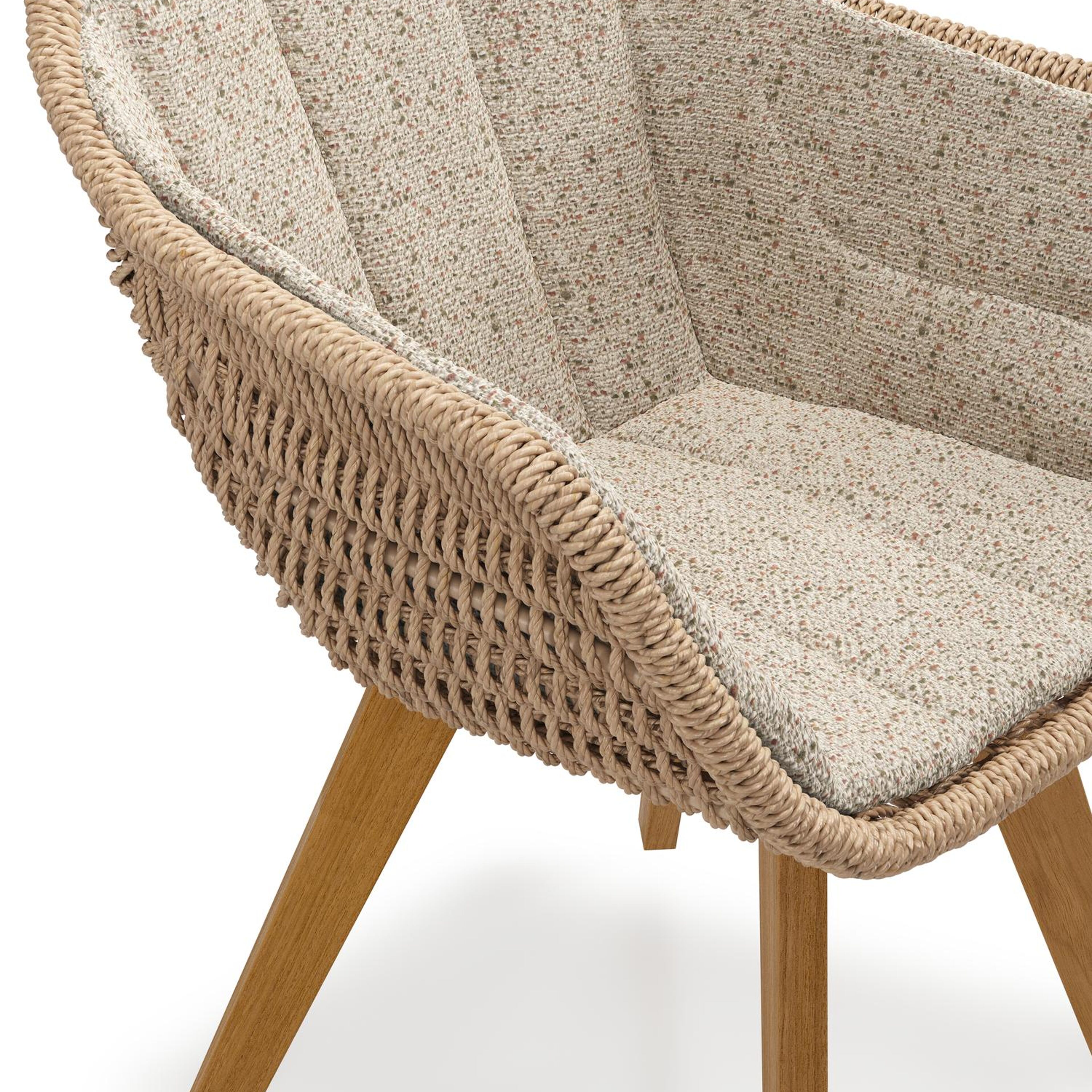 Pagino tuinstoel in teak en naturel ronde wicker met zitkussen in All Weather Cosytica Bora Jungle | Exterioo tuinmeubelen