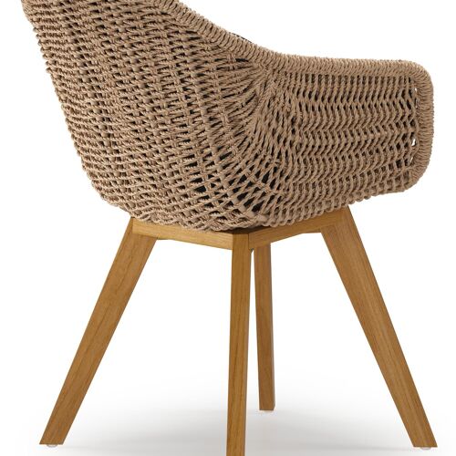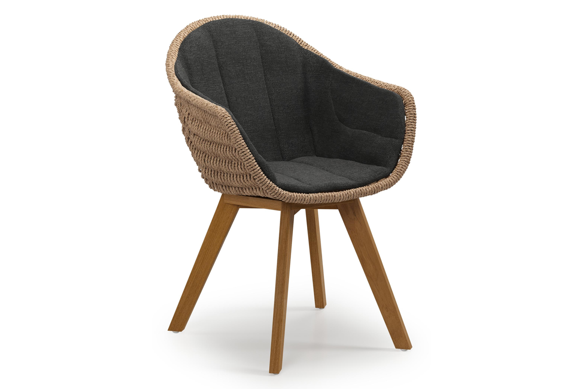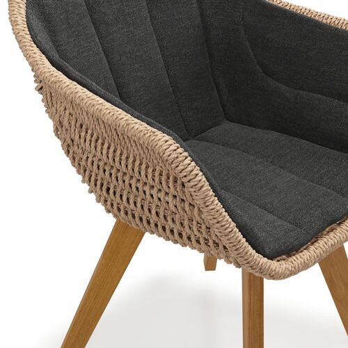 Pagino tuinstoel in teak en naturel ronde wicker met zitkussen in All Weather Sunbrella® Luxe Chartres Sooty | Exterioo