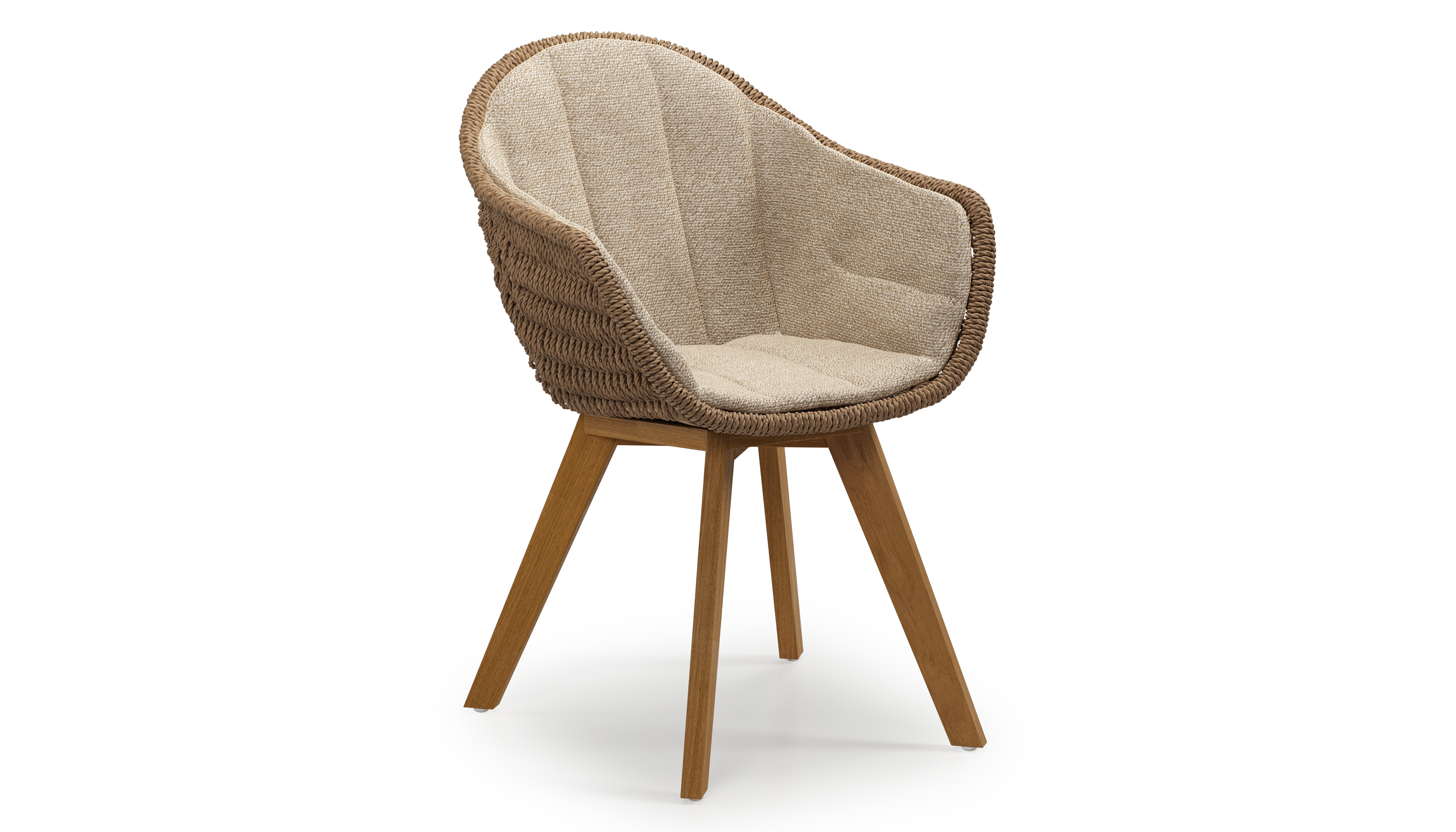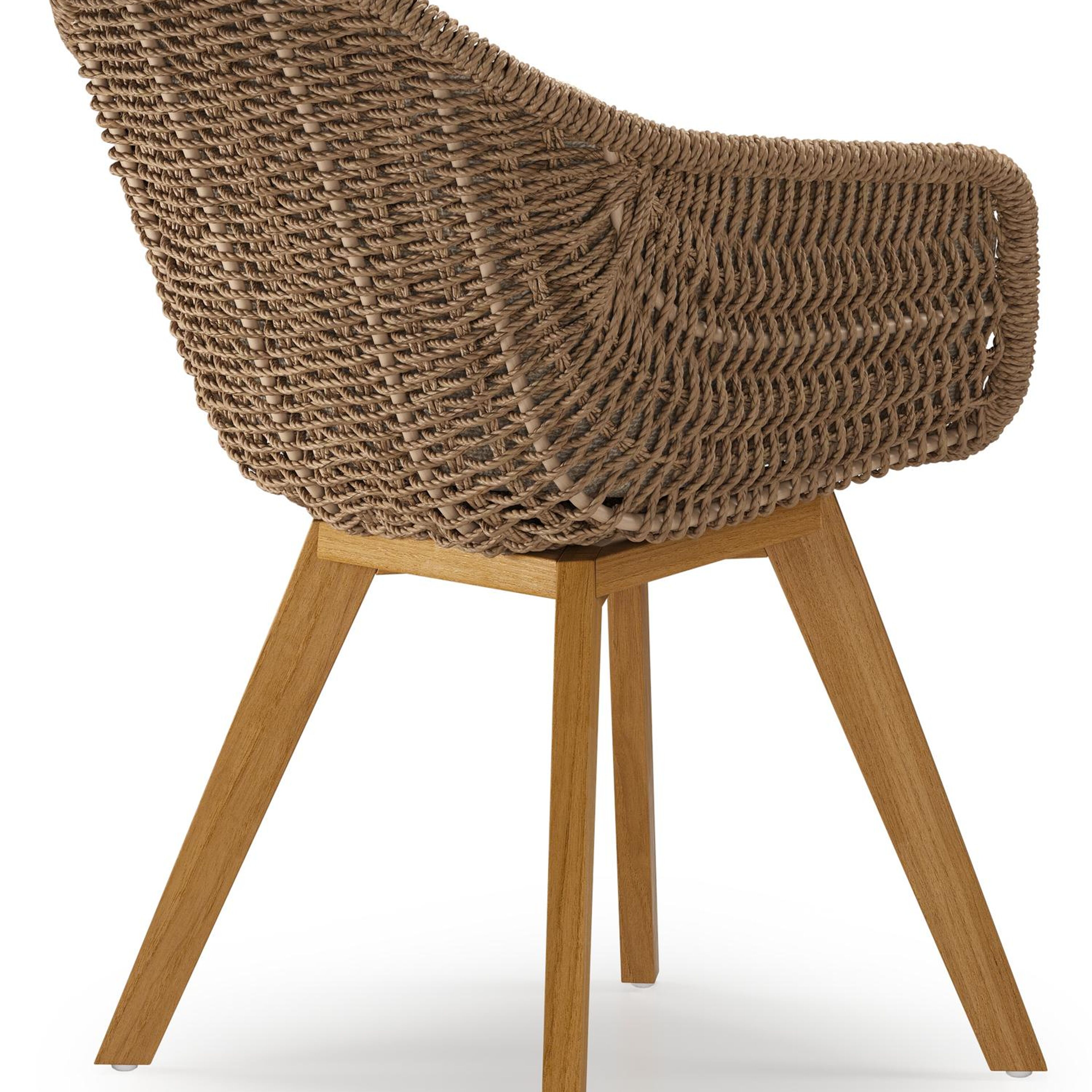 Pagino tuinstoel in teak en bruin ronde wicker met zitkussen in All Weather Cosytica Madagascar Oak | Exterioo tuinmeubelen