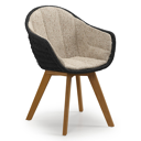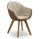 Pagino tuinstoel in teak en bruin ronde wicker met zitkussen in All Weather Cosytica Bora Jungle | Exterioo tuinmeubelen