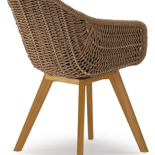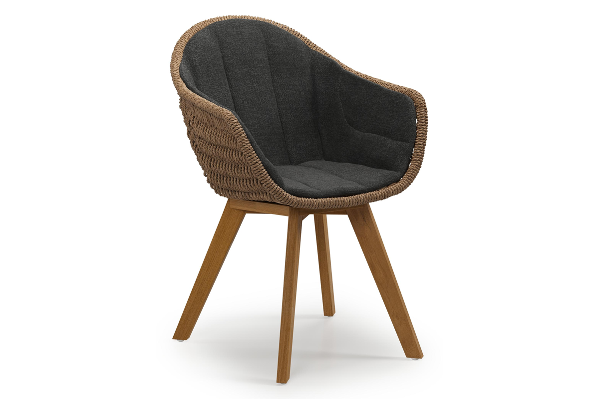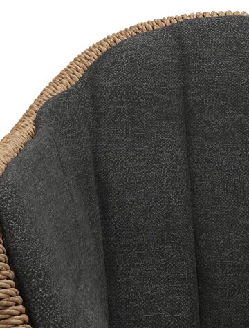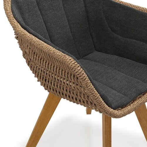 Pagino tuinstoel in teak en bruin ronde wicker met zitkussen in All Weather Sunbrella® Luxe Chartres Sooty | Exterioo