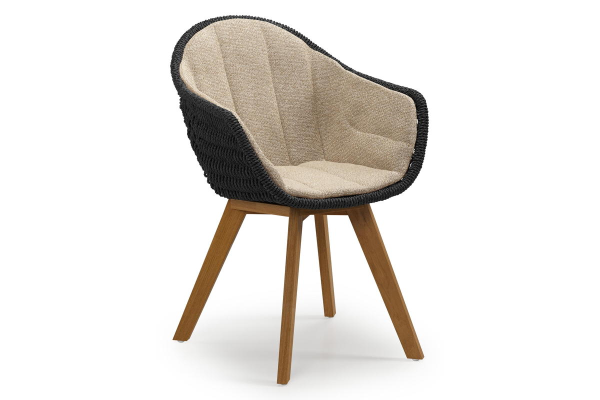 Pagino tuinstoel in teak en zwart ronde wicker met zitkussen in All Weather Cosytica Madagascar Oak | Exterioo