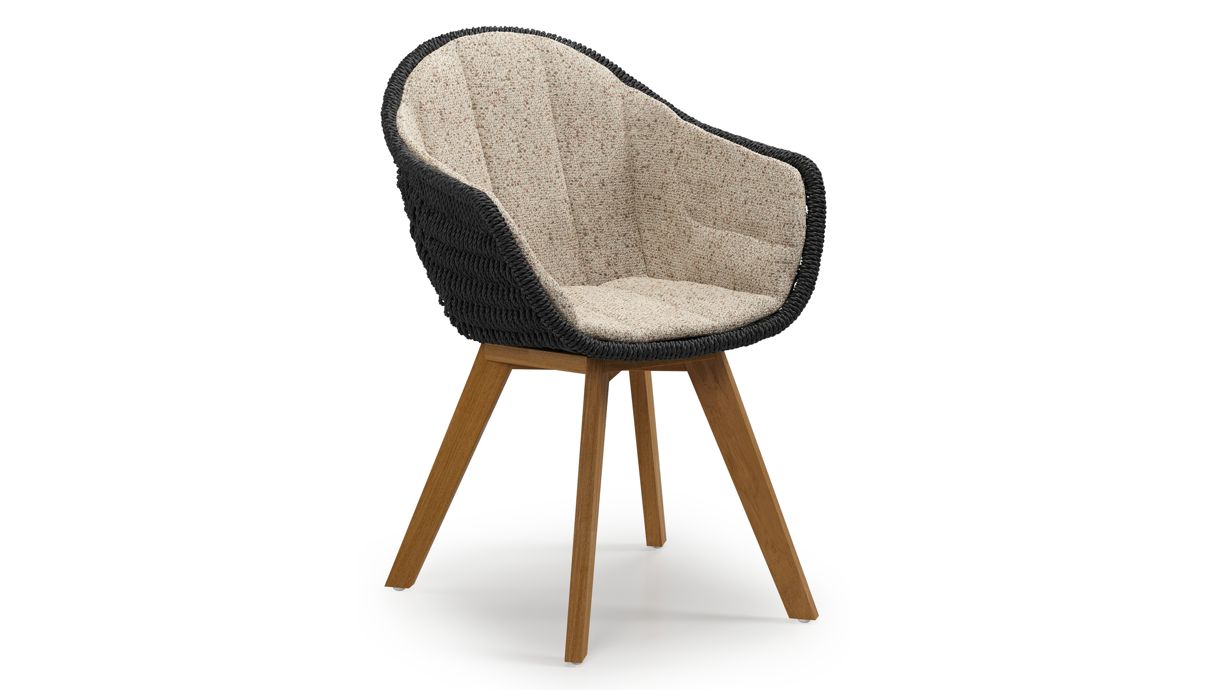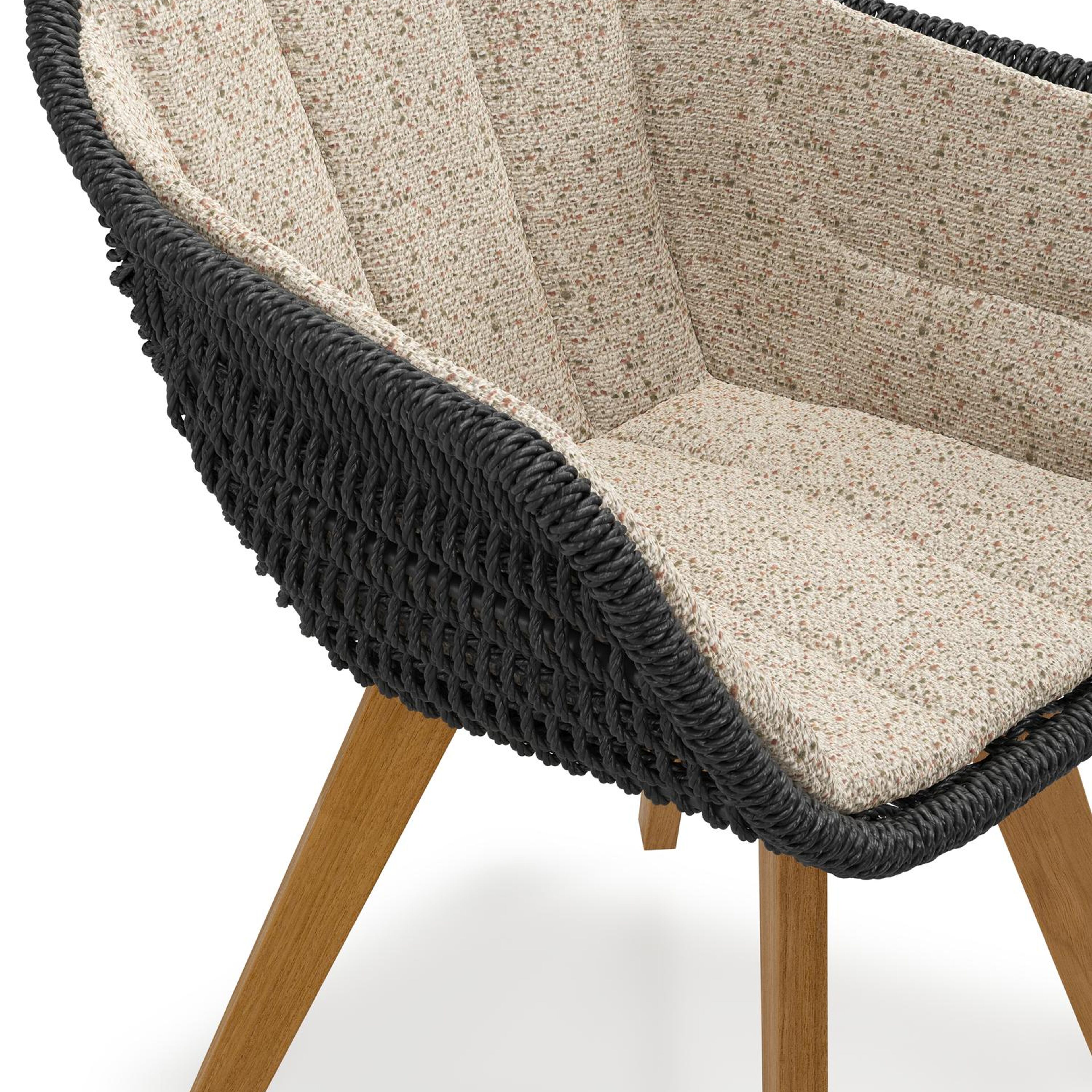 Pagino tuinstoel in teak en zwart ronde wicker met zitkussen in All Weather Cosytica Bora Jungle | Exterioo tuinmeubelen