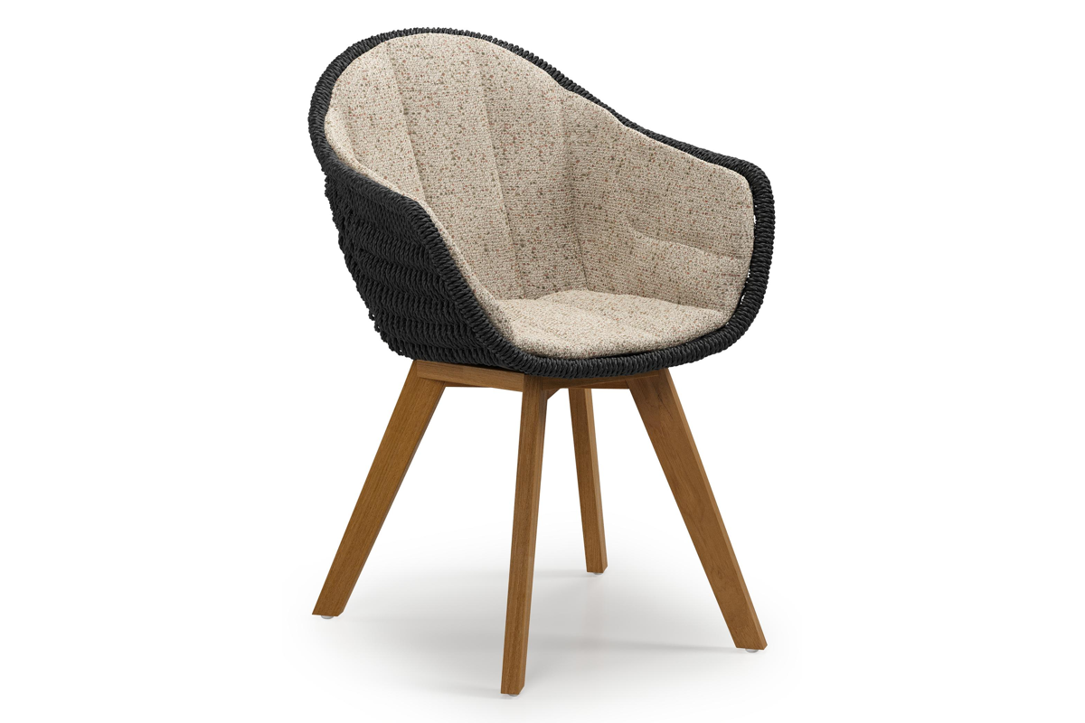 Pagino tuinstoel in teak en zwart ronde wicker met zitkussen in All Weather Cosytica Bora Jungle | Exterioo