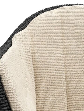 Pagino tuinstoel in teak en zwart ronde wicker met zitkussen in All Weather Cosytica Althea Chalk | Exterioo