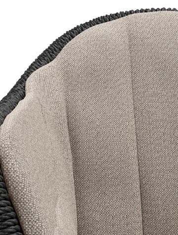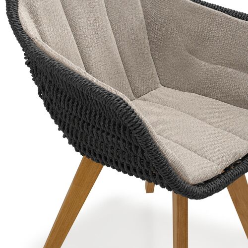 Pagino tuinstoel in teak en zwart ronde wicker met zitkussen in All Weather Sunbrella® Luxe Savane Coconut | Exterioo