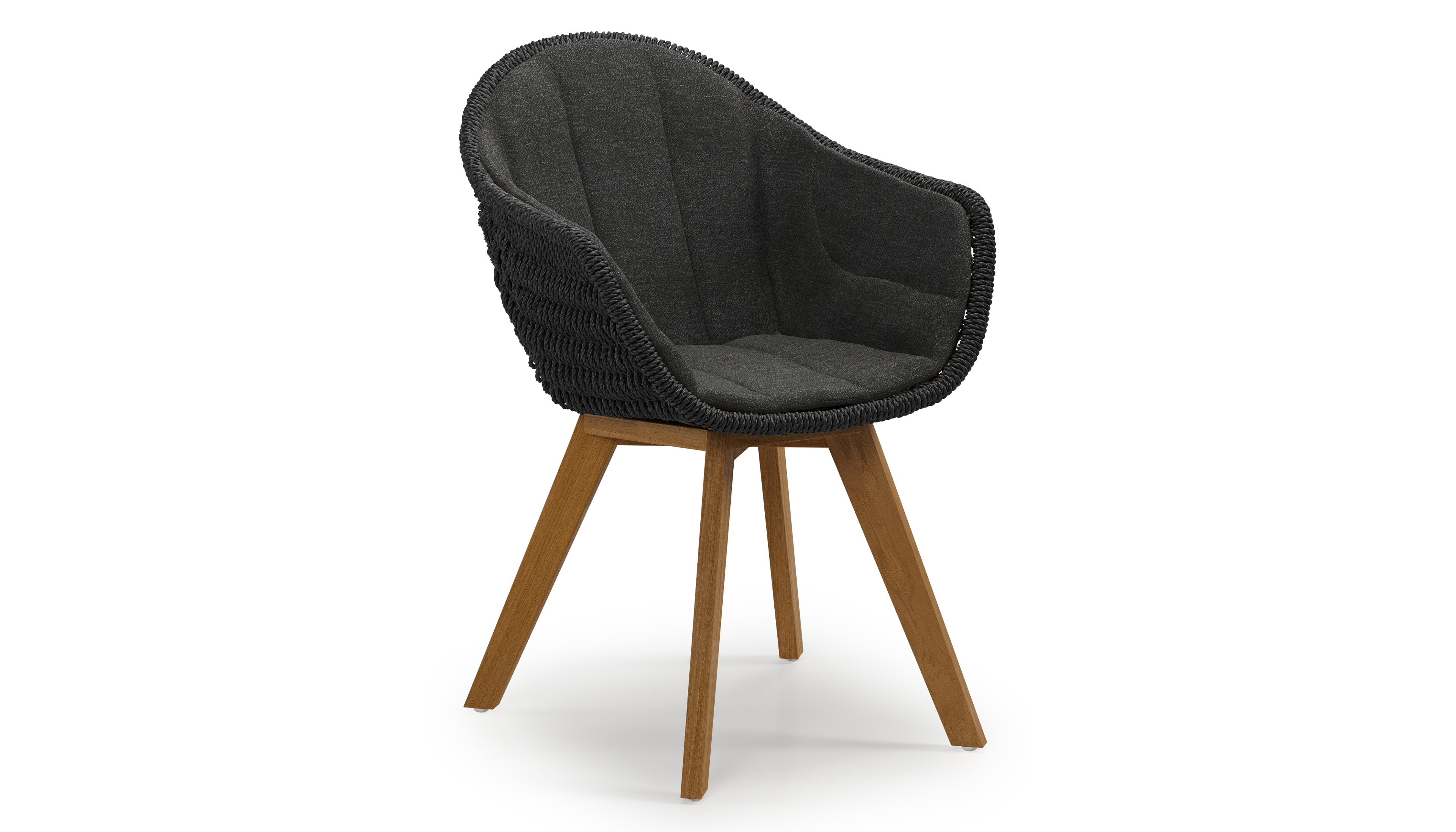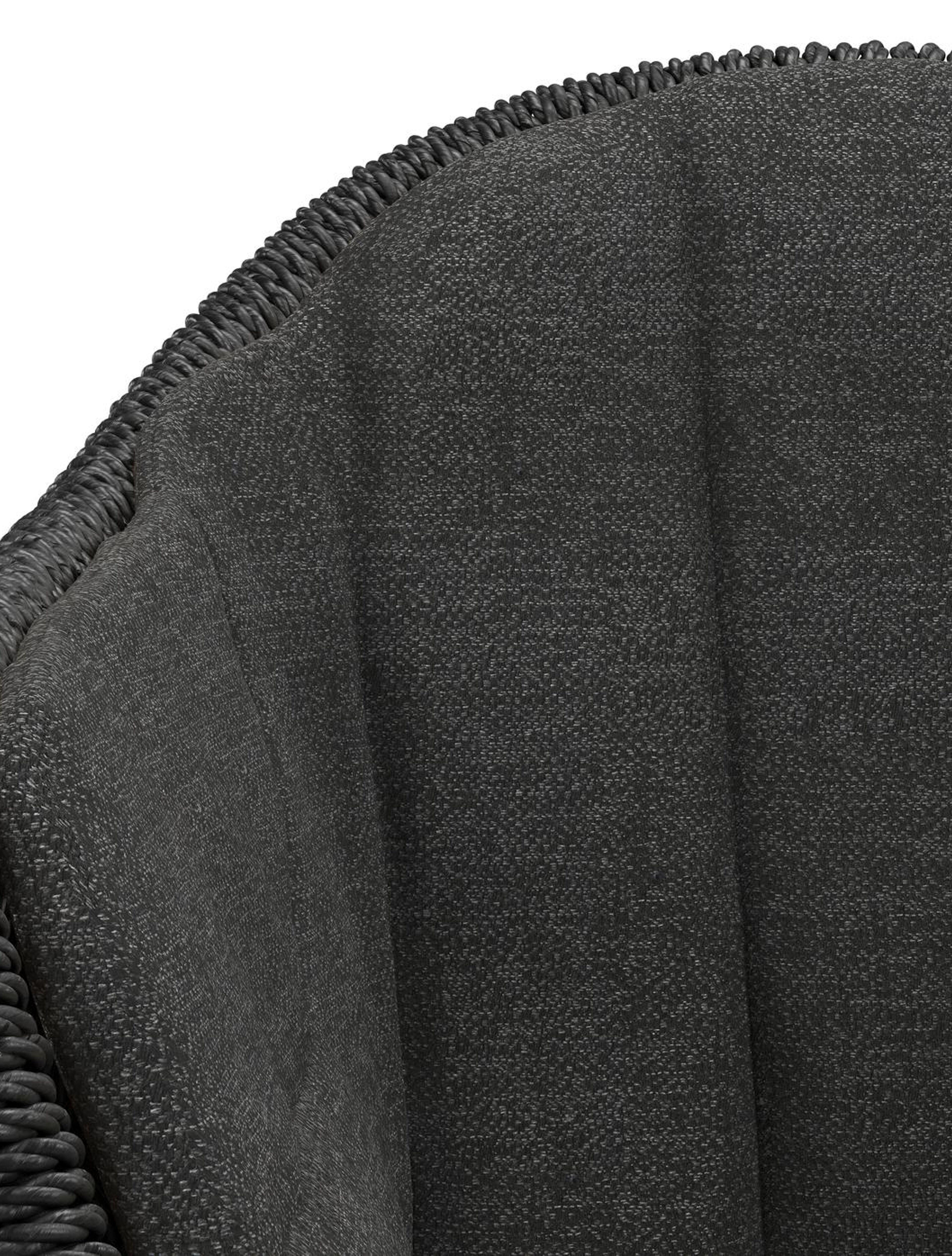 Pagino tuinstoel in teak en zwart ronde wicker met zitkussen in All Weather Sunbrella® Luxe Chartres Sooty | Exterioo tuinmeubelen