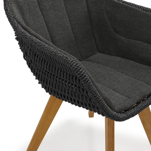 Pagino tuinstoel in teak en zwart ronde wicker met zitkussen in All Weather Sunbrella® Luxe Chartres Sooty | Exterioo