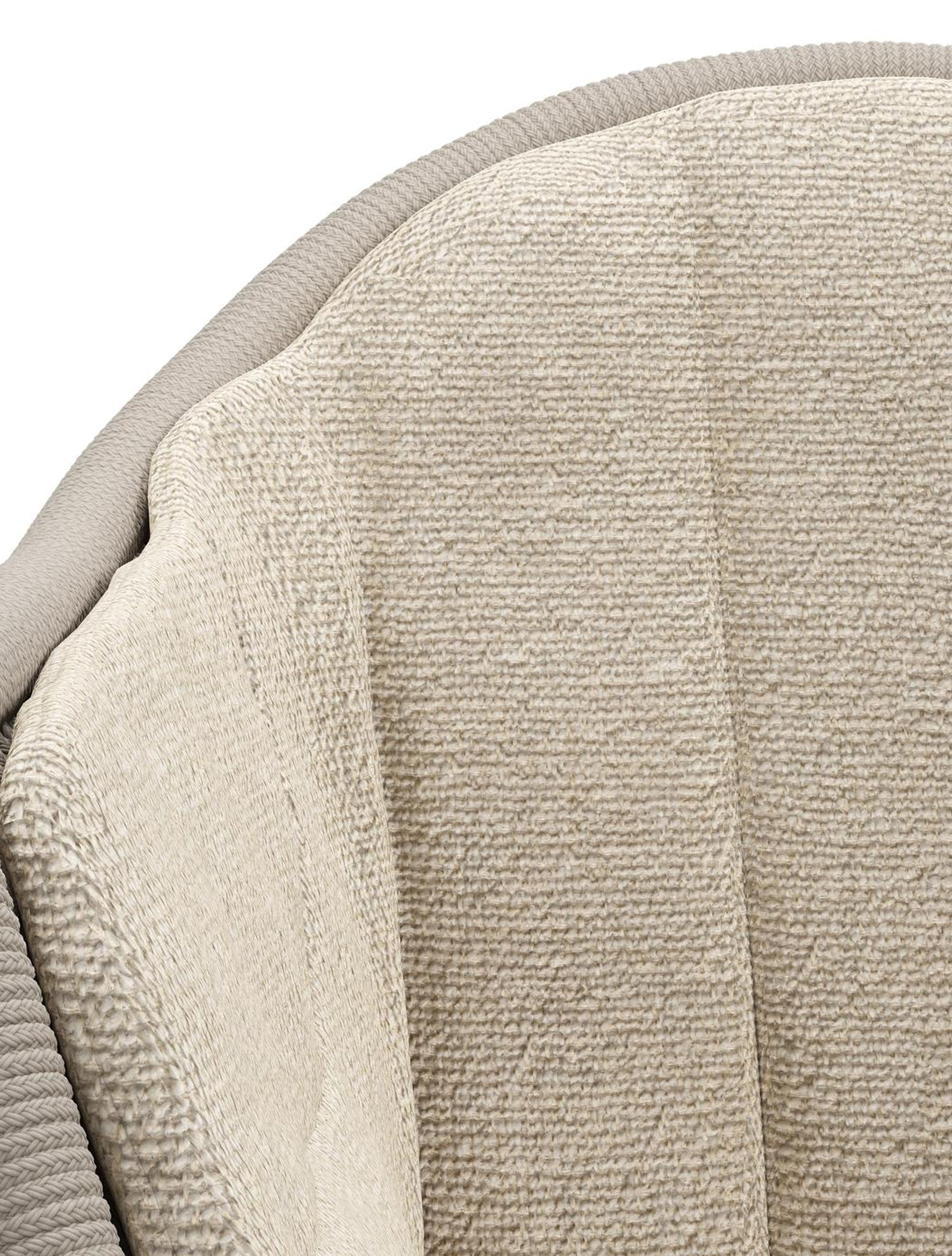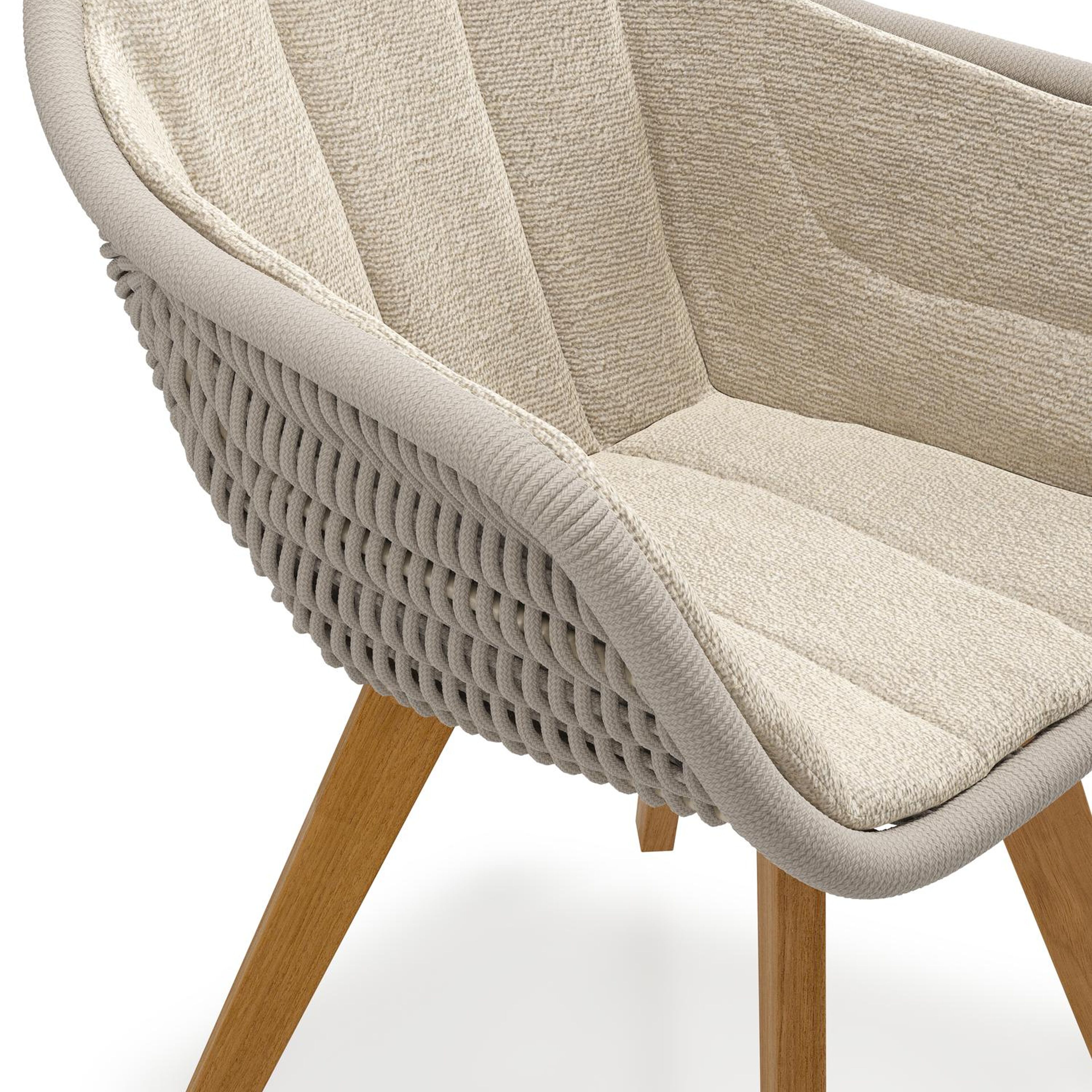 Pagino tuinstoel in teak en beige verticaal geweven ronde rope met zitkussen in All Weather Cosytica Marbella Sand | Exterioo tuinmeubelen