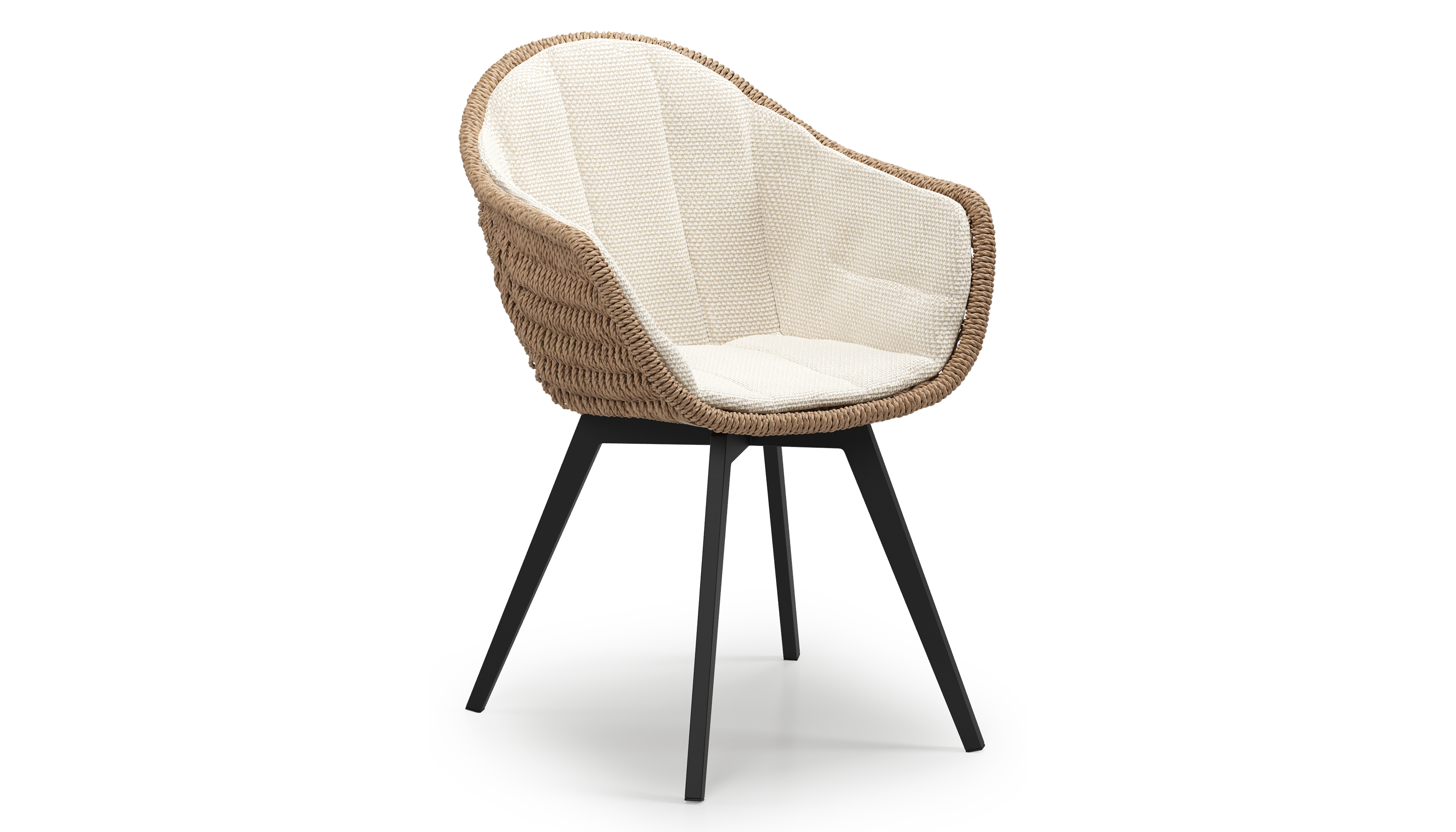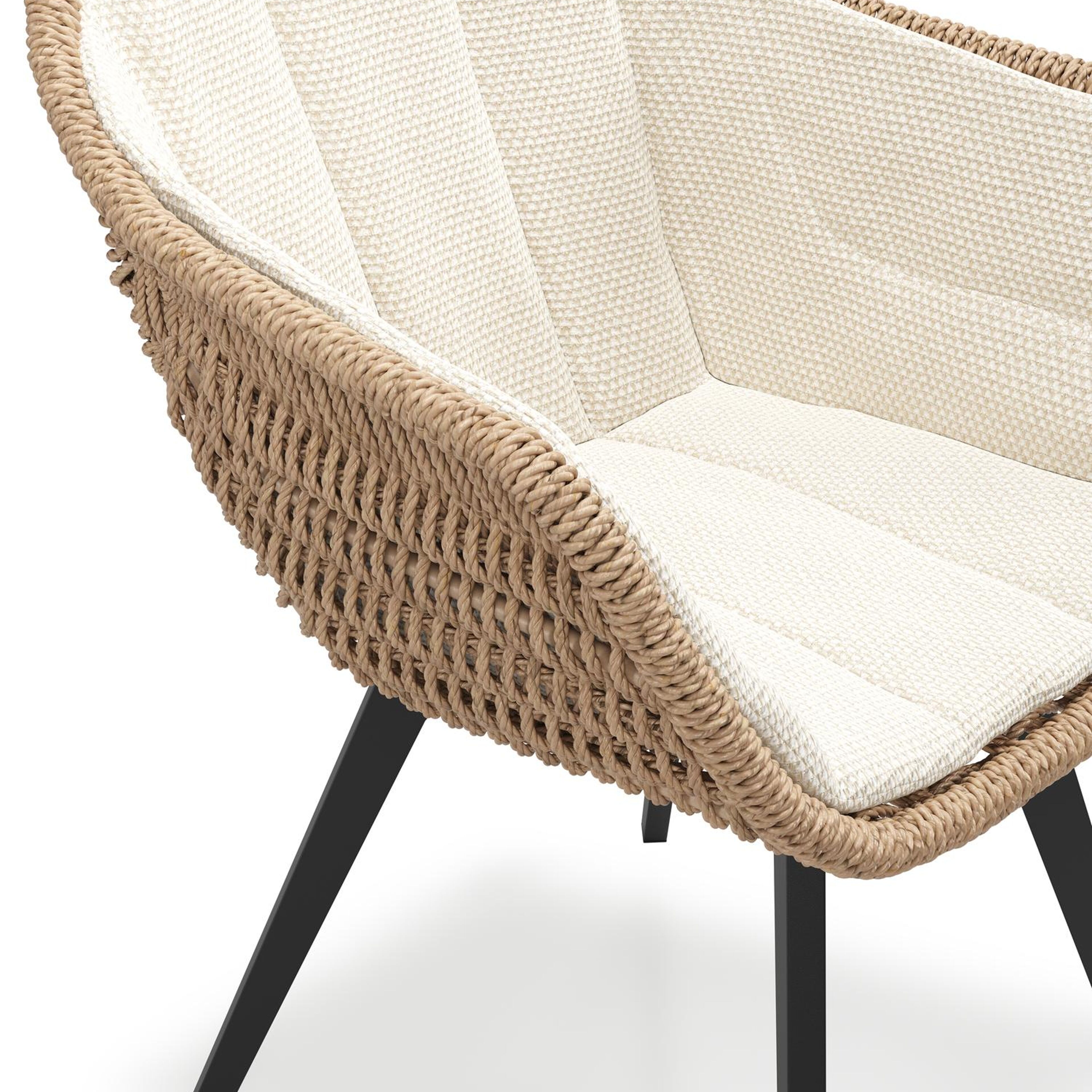 Pagino tuinstoel in zwart aluminium en naturel ronde wicker met zitkussen in All Weather Cosytica Althea Off White | Exterioo tuinmeubelen
