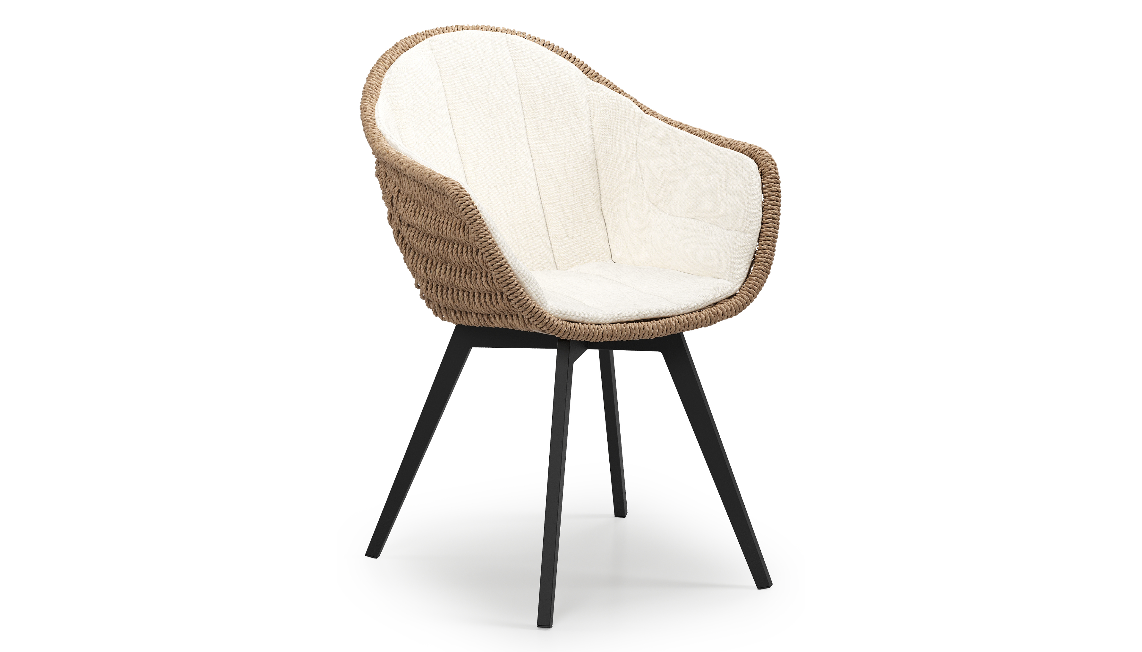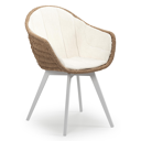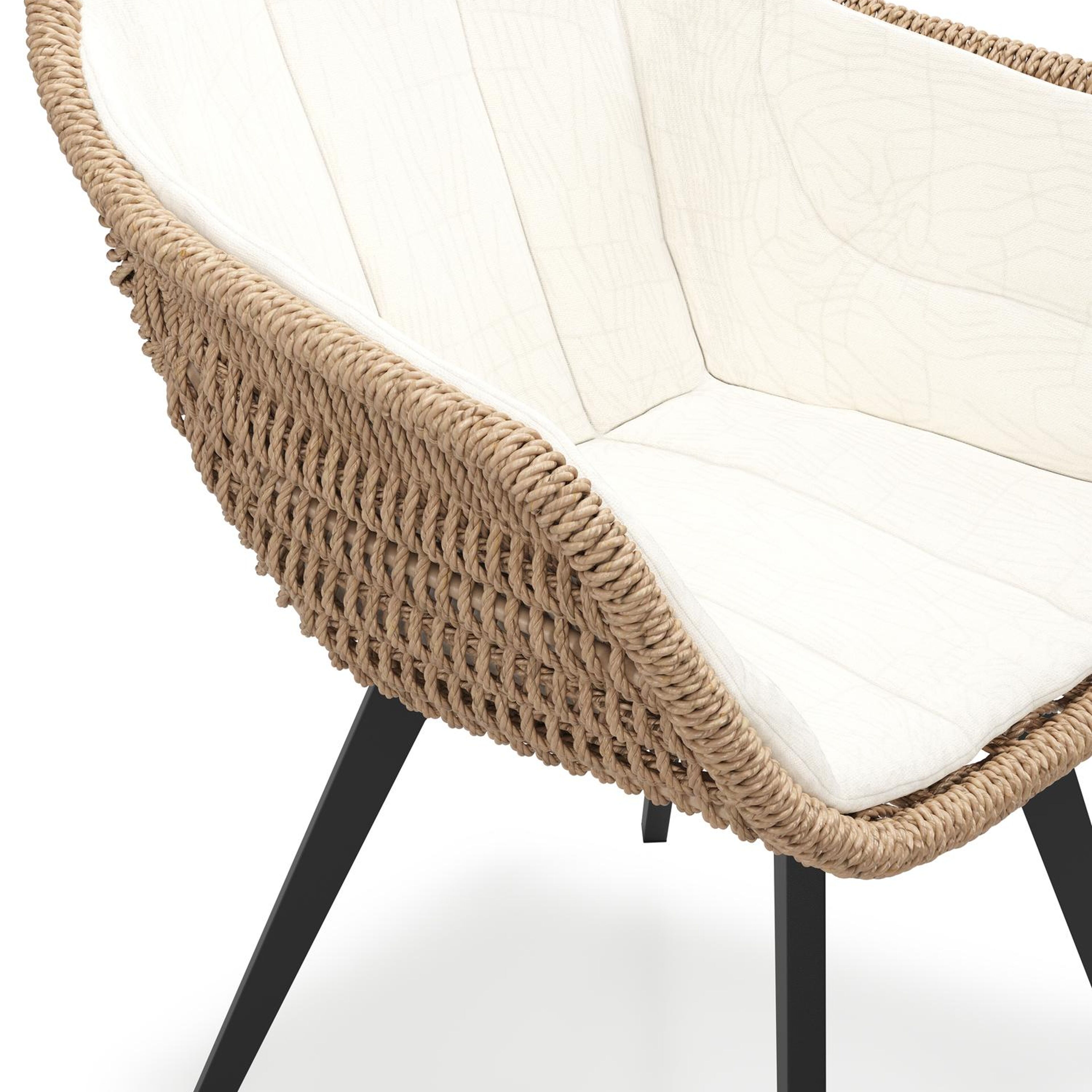 Pagino tuinstoel in zwart aluminium en naturel ronde wicker met zitkussen in All Weather Sunbrella® Luxe Natte White | Exterioo tuinmeubelen