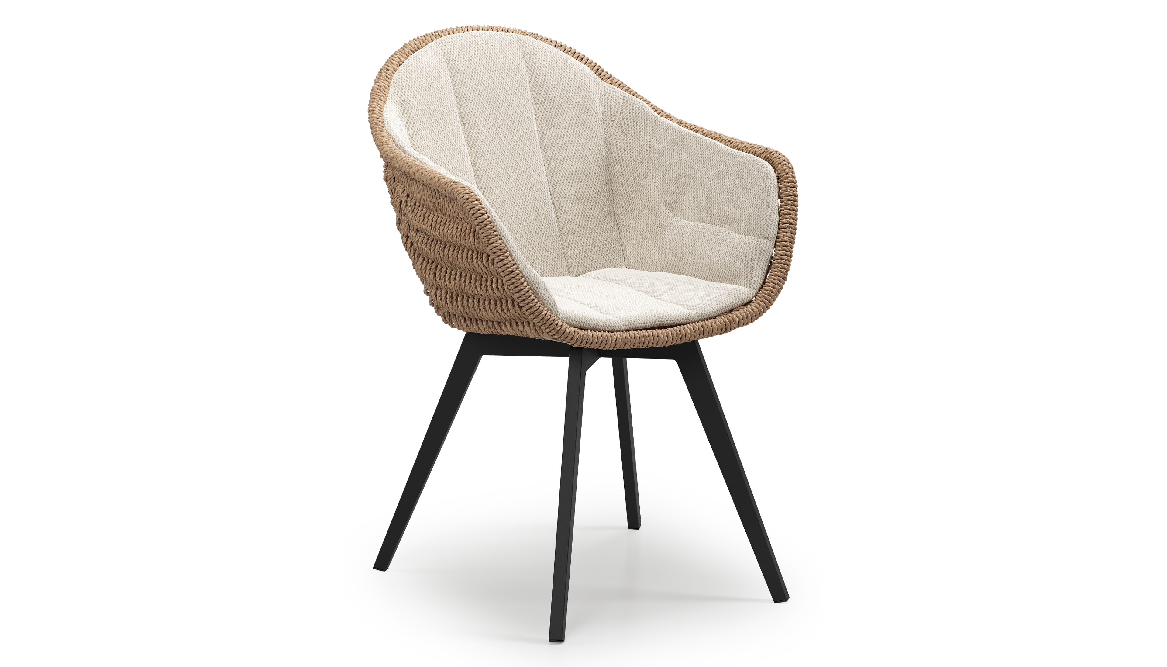 Pagino tuinstoel in zwart aluminium en naturel ronde wicker met zitkussen in All Weather Sunbrella® Luxe Lopi Marble | Exterioo tuinmeubelen