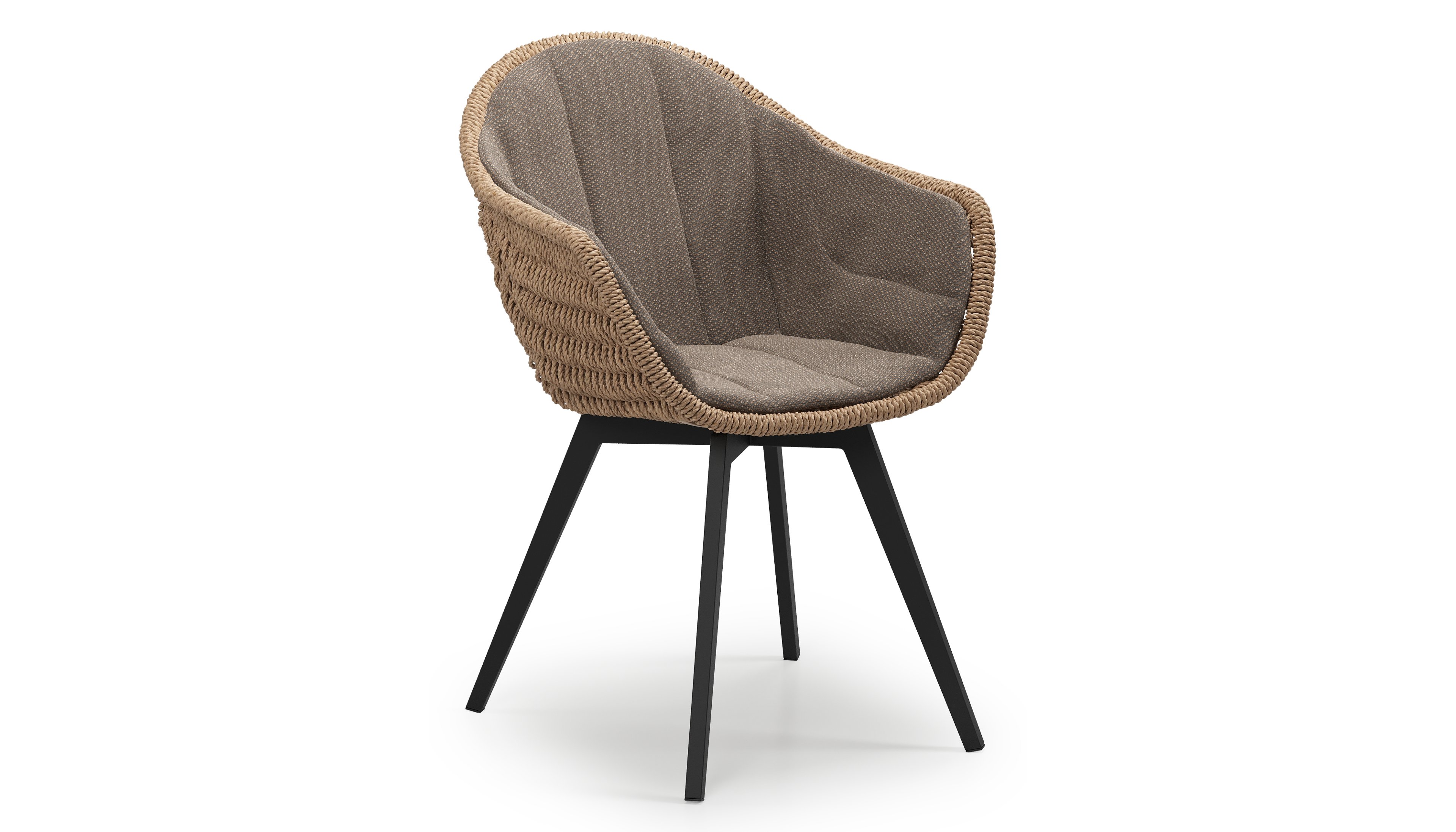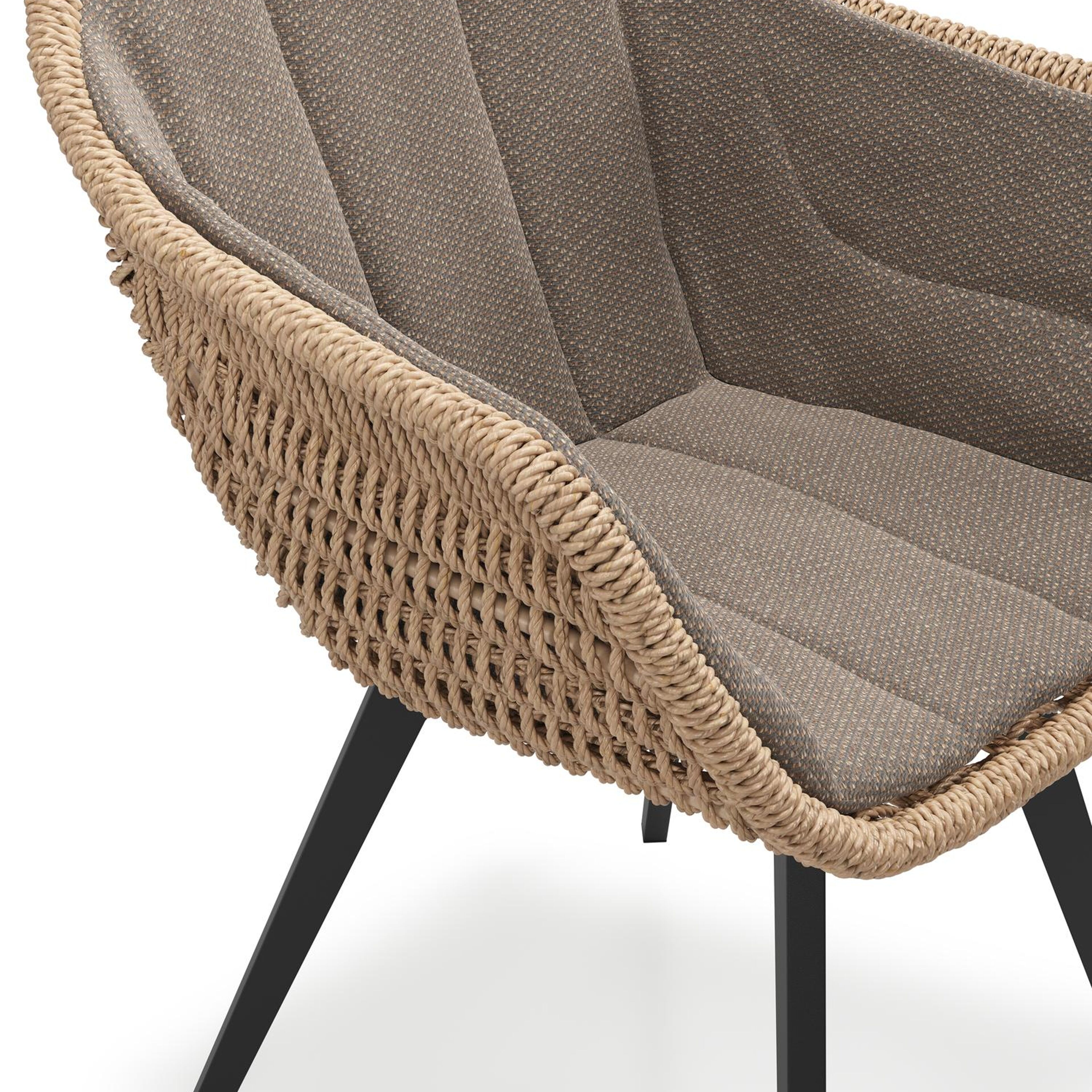 Pagino tuinstoel in zwart aluminium en naturel ronde wicker met zitkussen in All Weather Sunbrella® Luxe Lopi Coconut | Exterioo tuinmeubelen