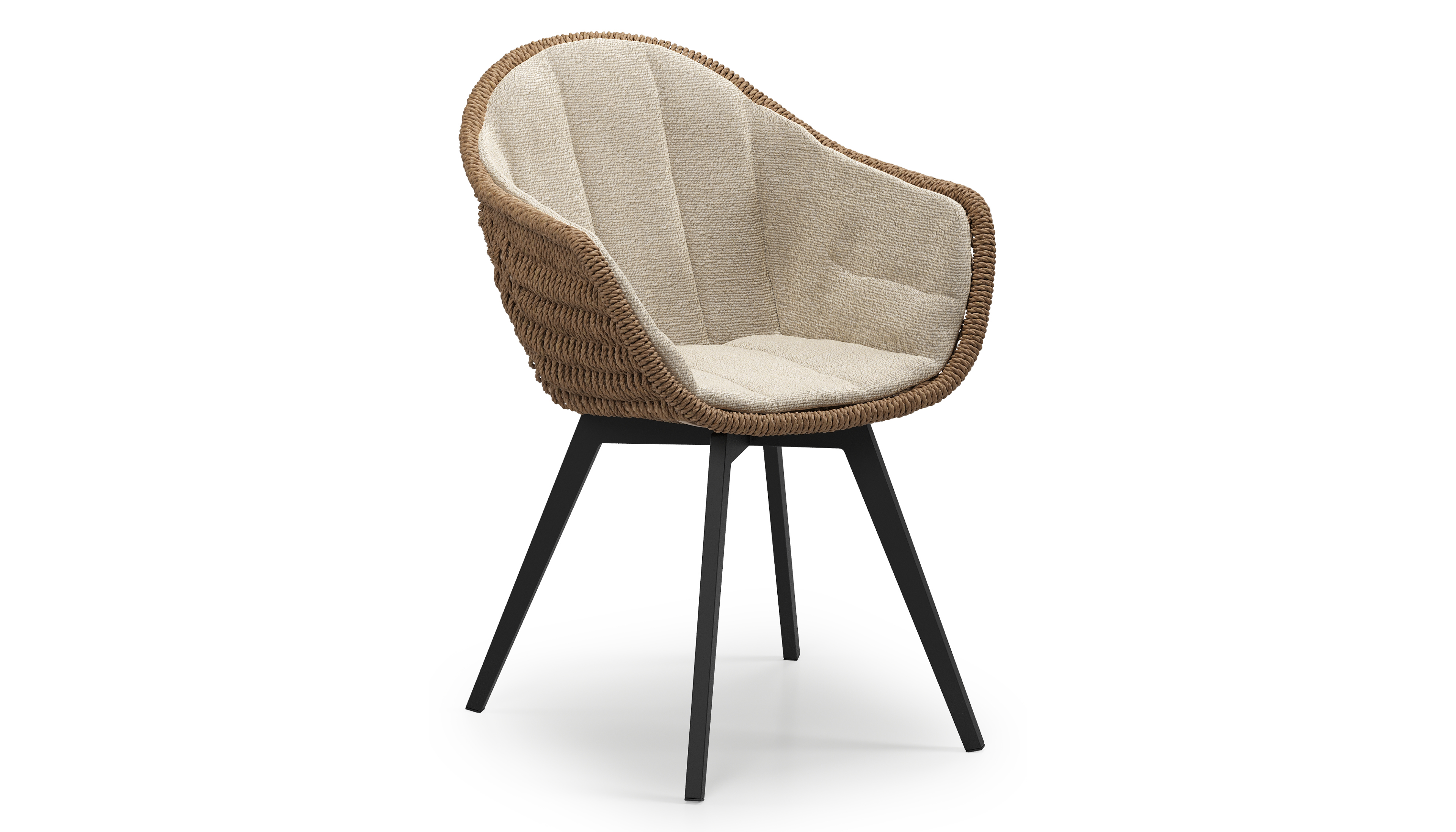 Pagino tuinstoel in zwart aluminium en bruin ronde wicker met zitkussen in All Weather Cosytica Marbella Sand | Exterioo tuinmeubelen