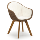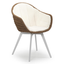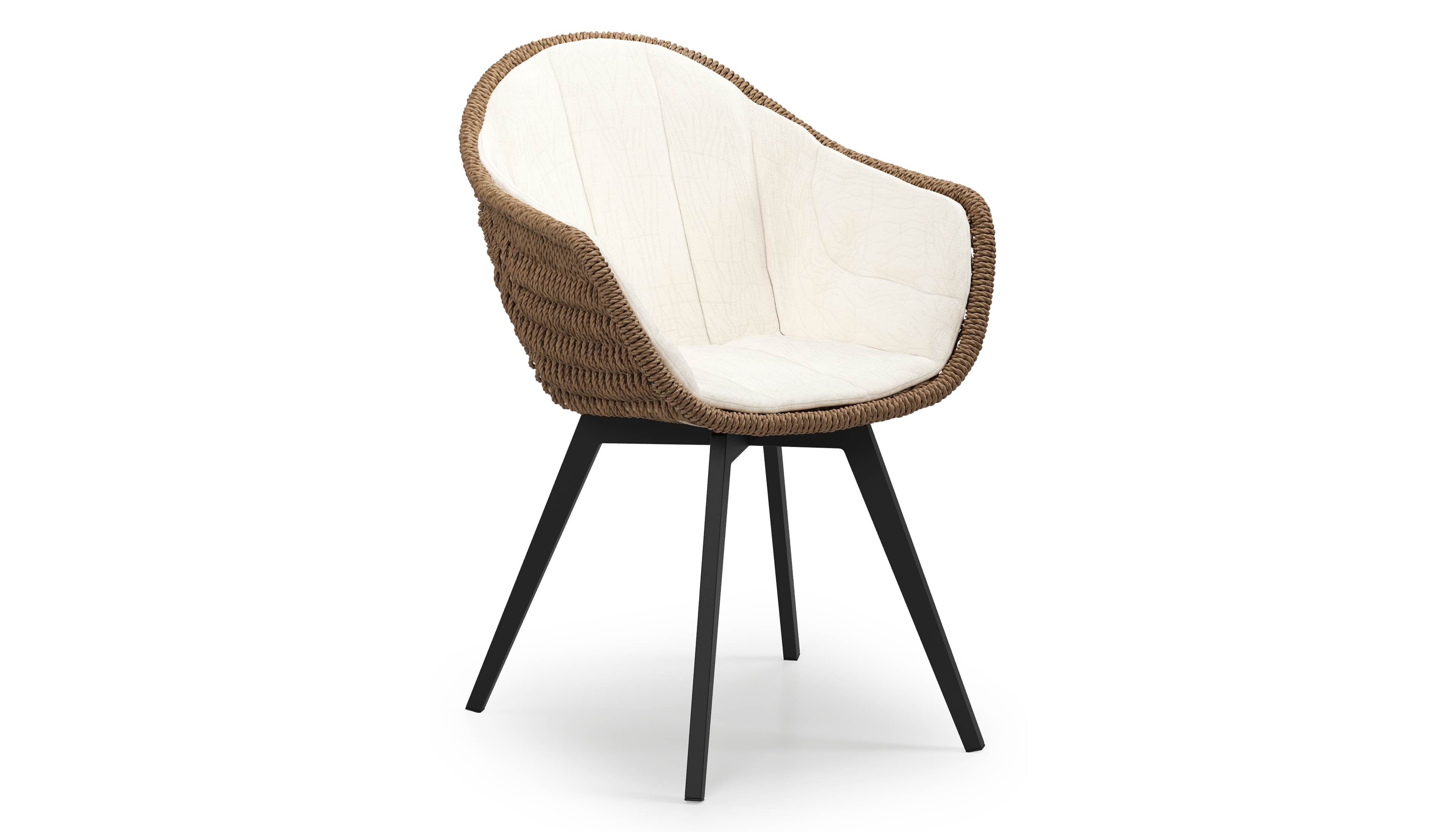 Pagino tuinstoel in zwart aluminium en bruin ronde wicker met zitkussen in All Weather Sunbrella® Luxe Natte White | Exterioo tuinmeubelen