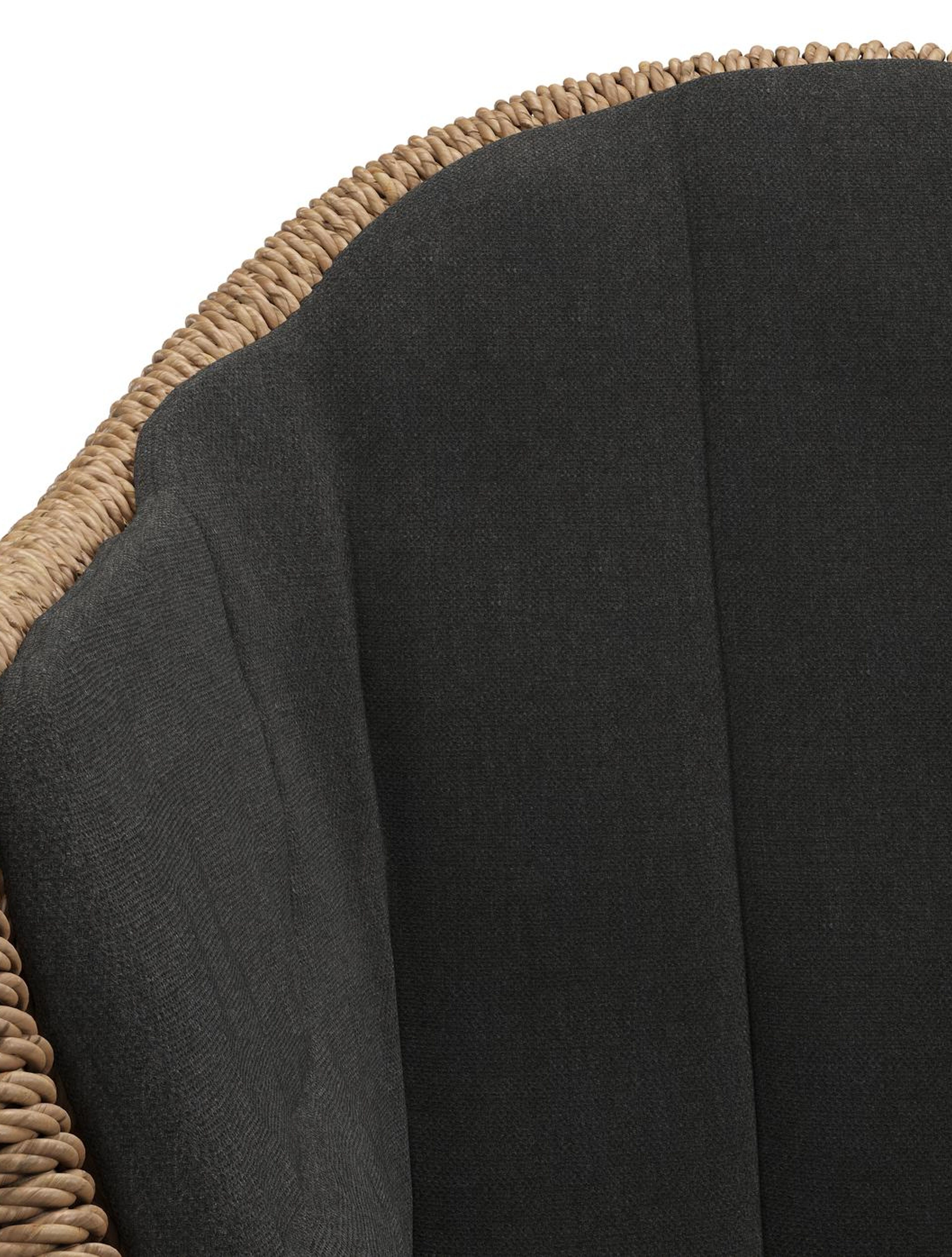 Pagino tuinstoel in zwart aluminium en bruin ronde wicker met zitkussen in All Weather Sunbrella® Luxe Natte Sooty | Exterioo tuinmeubelen