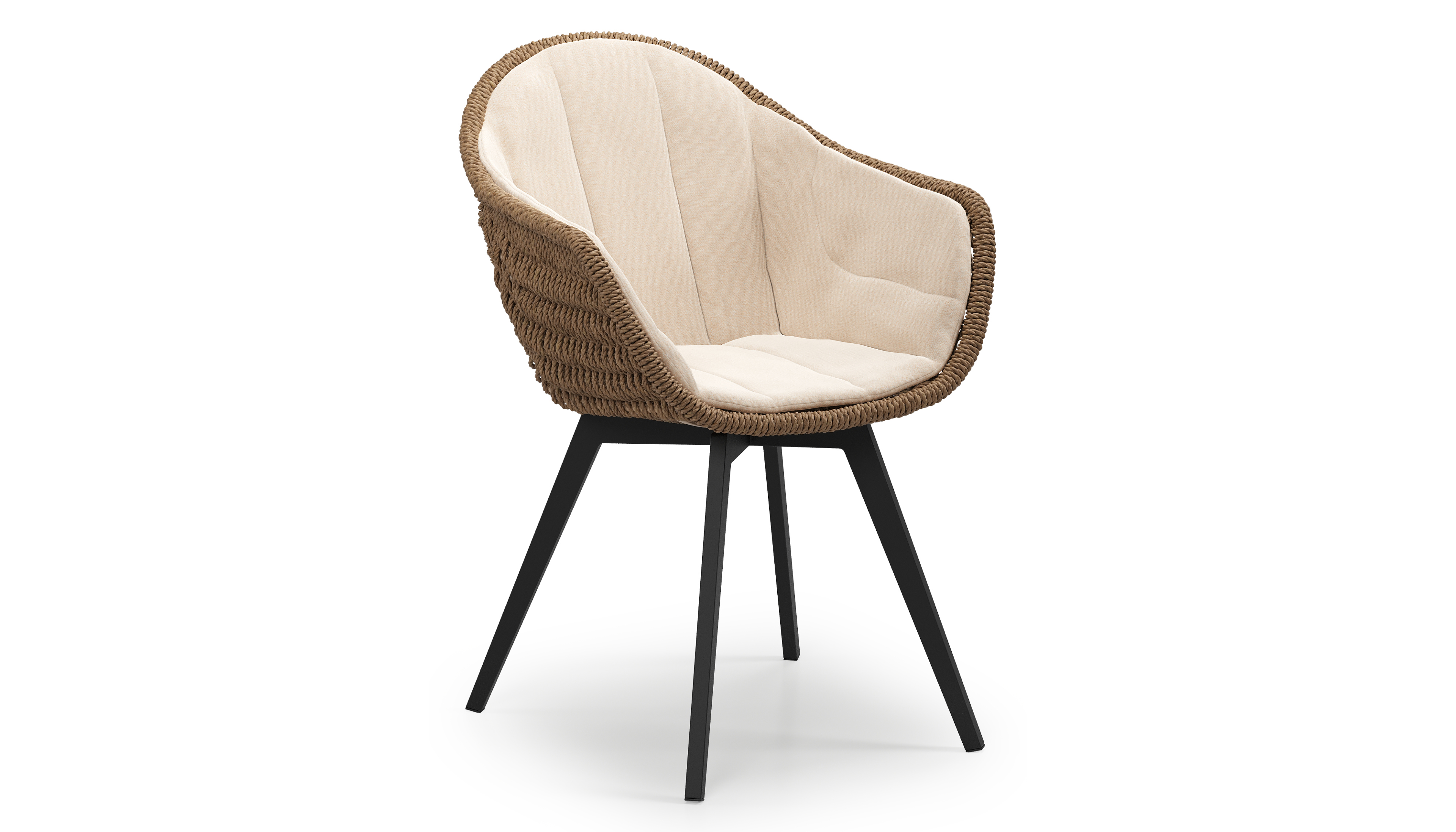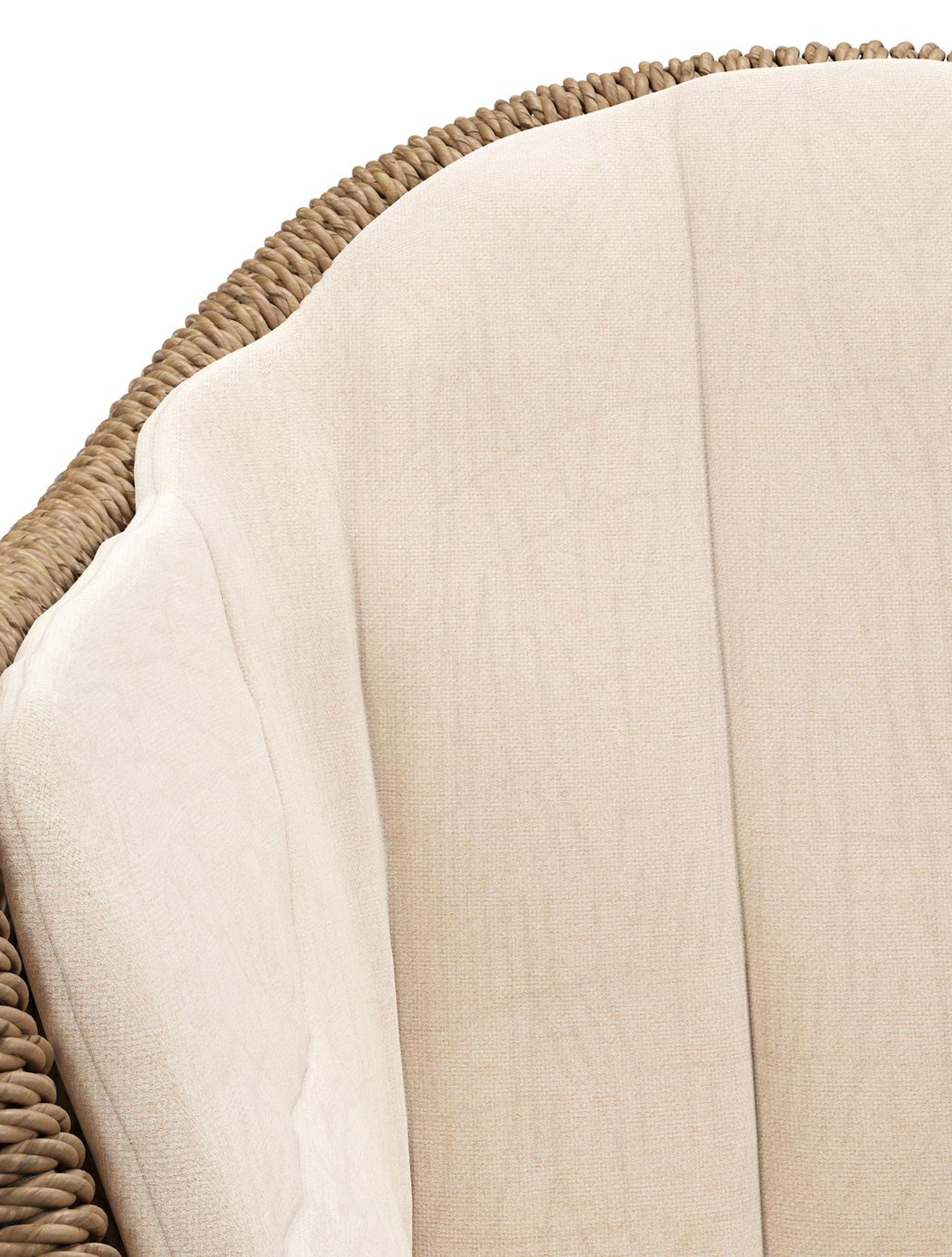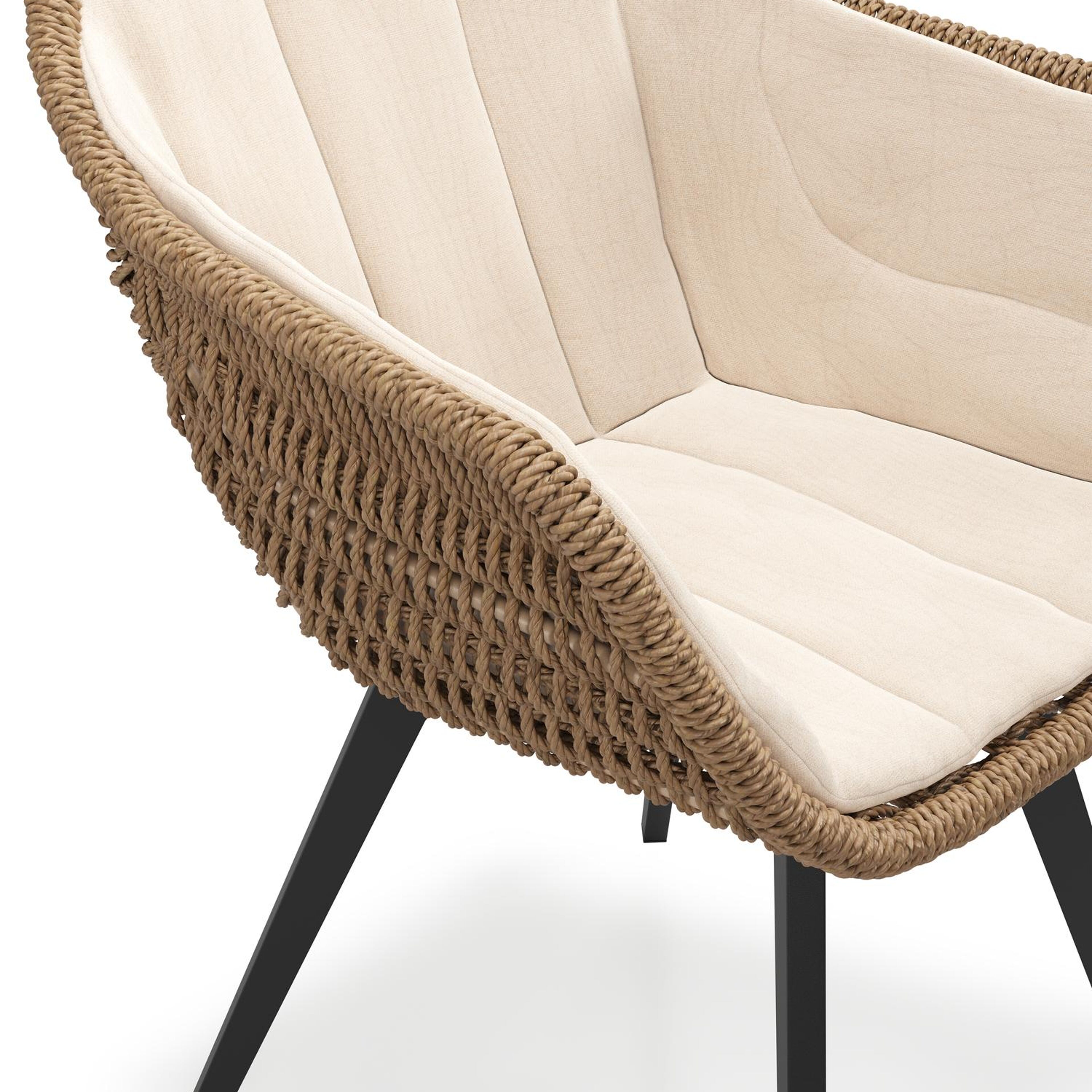 Pagino tuinstoel in zwart aluminium en bruin ronde wicker met zitkussen in All Weather Sunbrella® Luxe Natte Linen Chalk | Exterioo tuinmeubelen