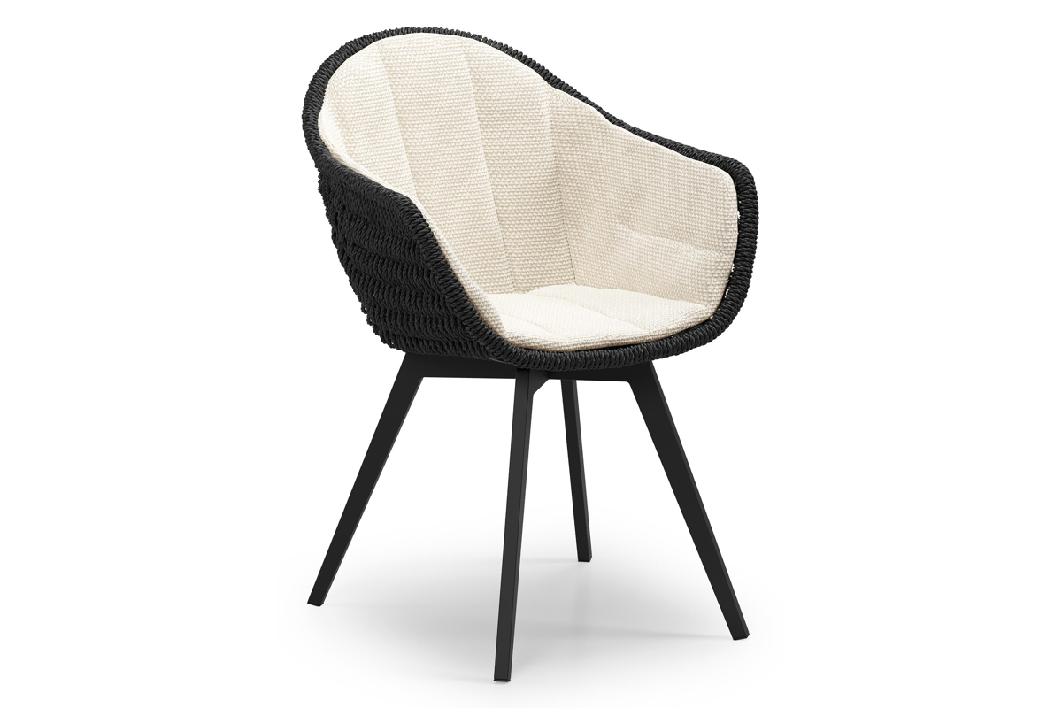 Pagino tuinstoel in zwart aluminium en zwart ronde wicker met zitkussen in All Weather Cosytica Althea Off White | Exterioo