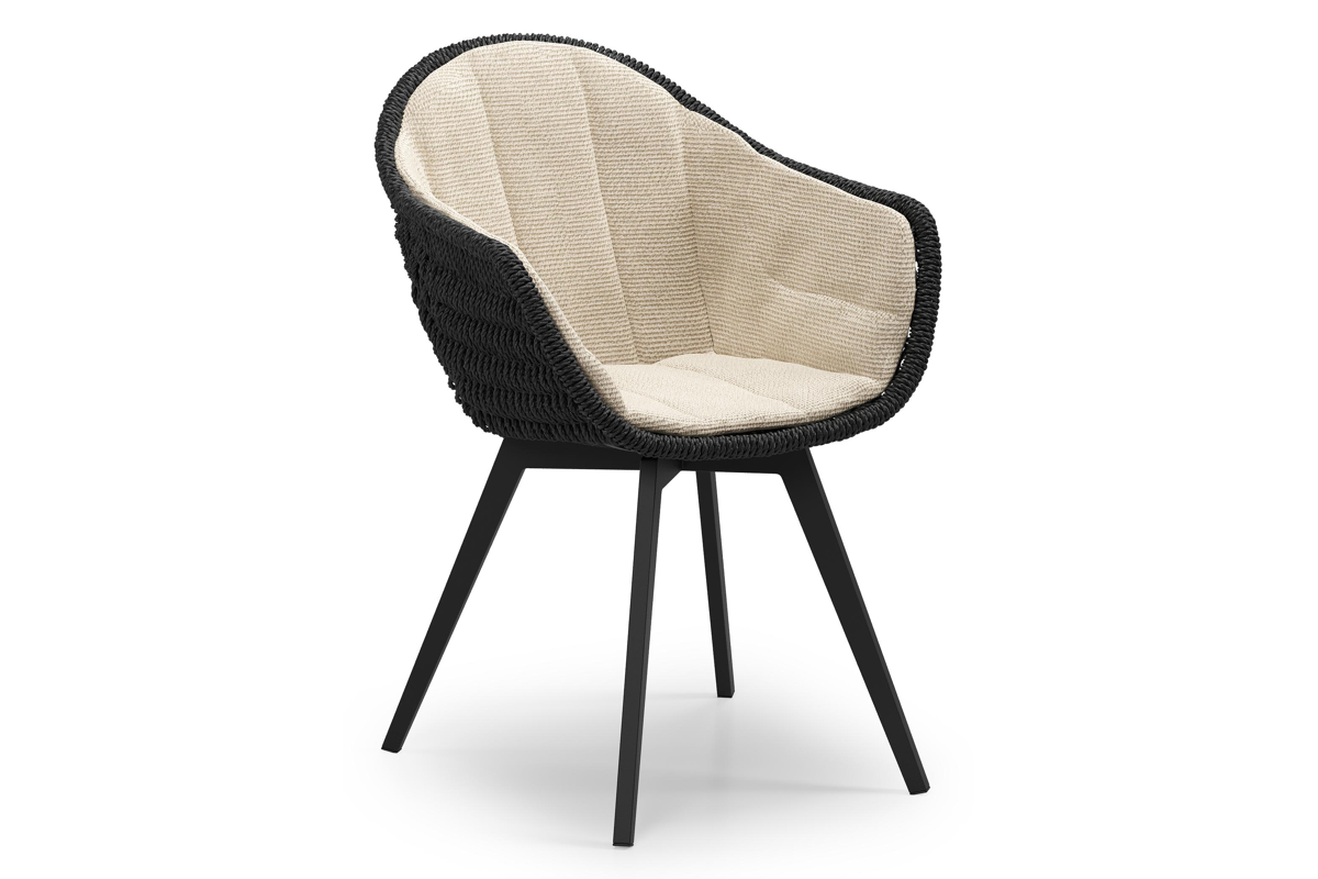 Pagino tuinstoel in zwart aluminium en zwart ronde wicker met zitkussen in All Weather Cosytica Althea Chalk | Exterioo