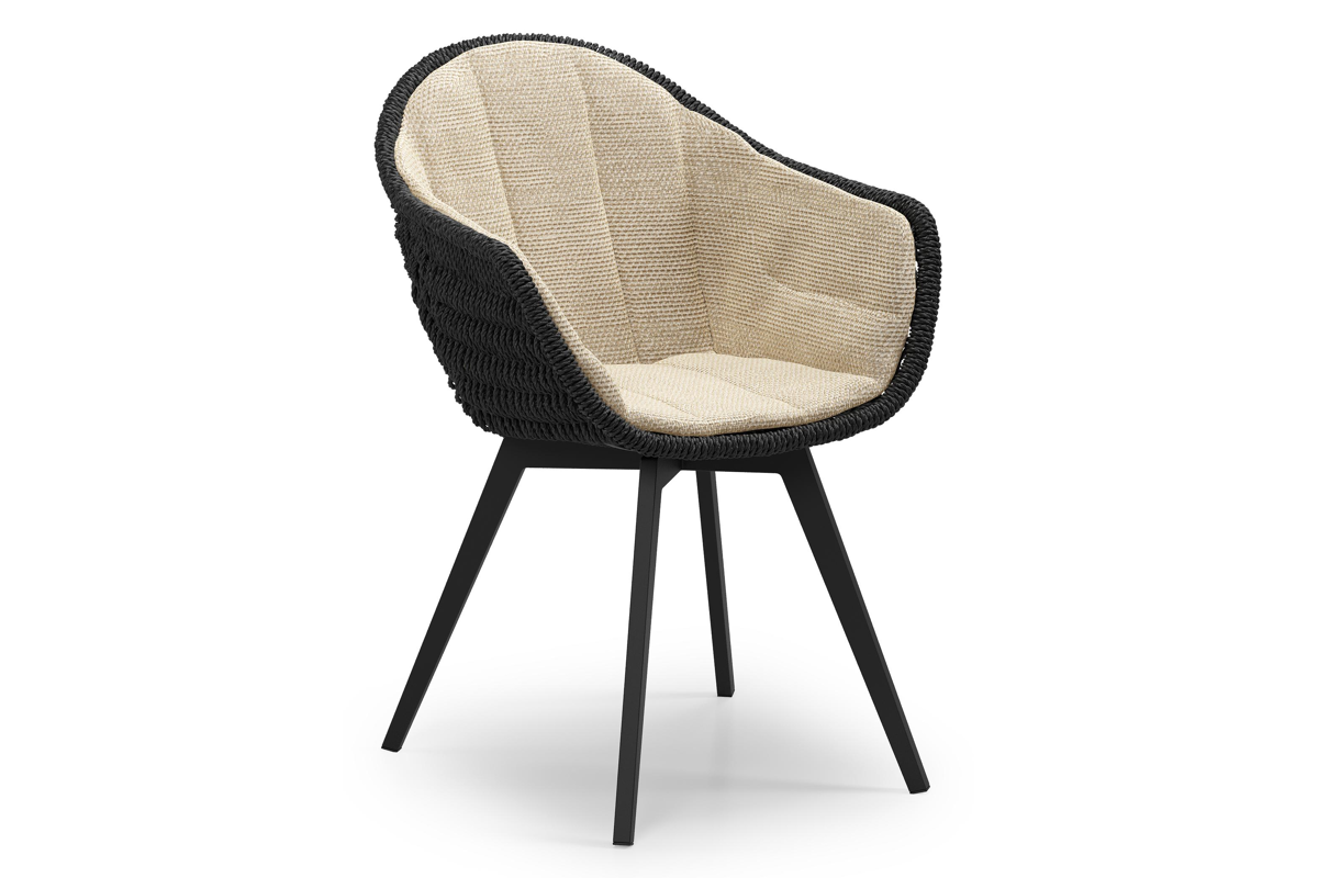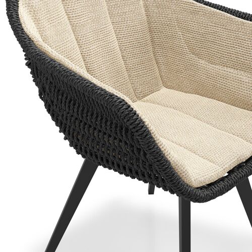 Pagino tuinstoel in zwart aluminium en zwart ronde wicker met zitkussen in All Weather Cosytica Althea Camel | Exterioo
