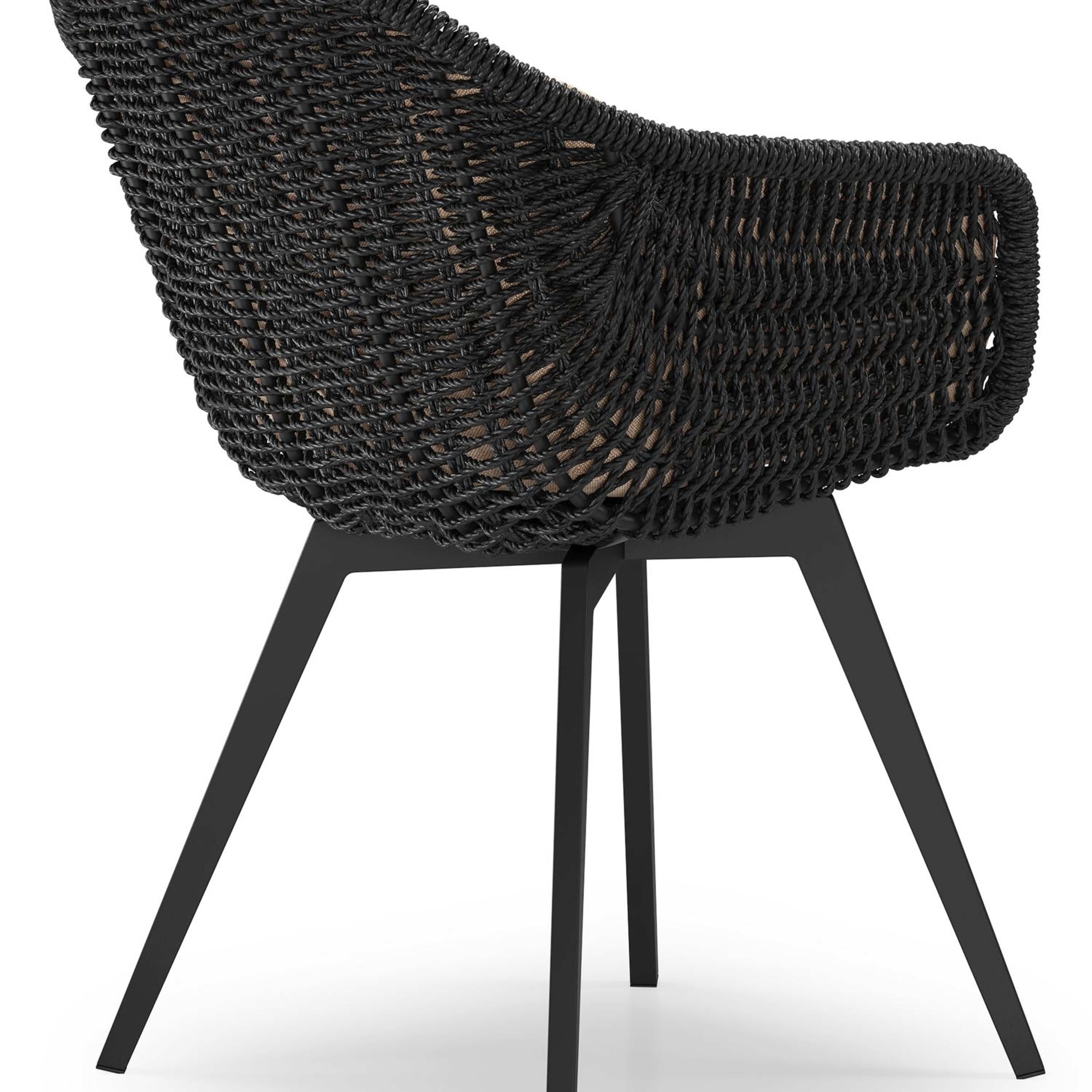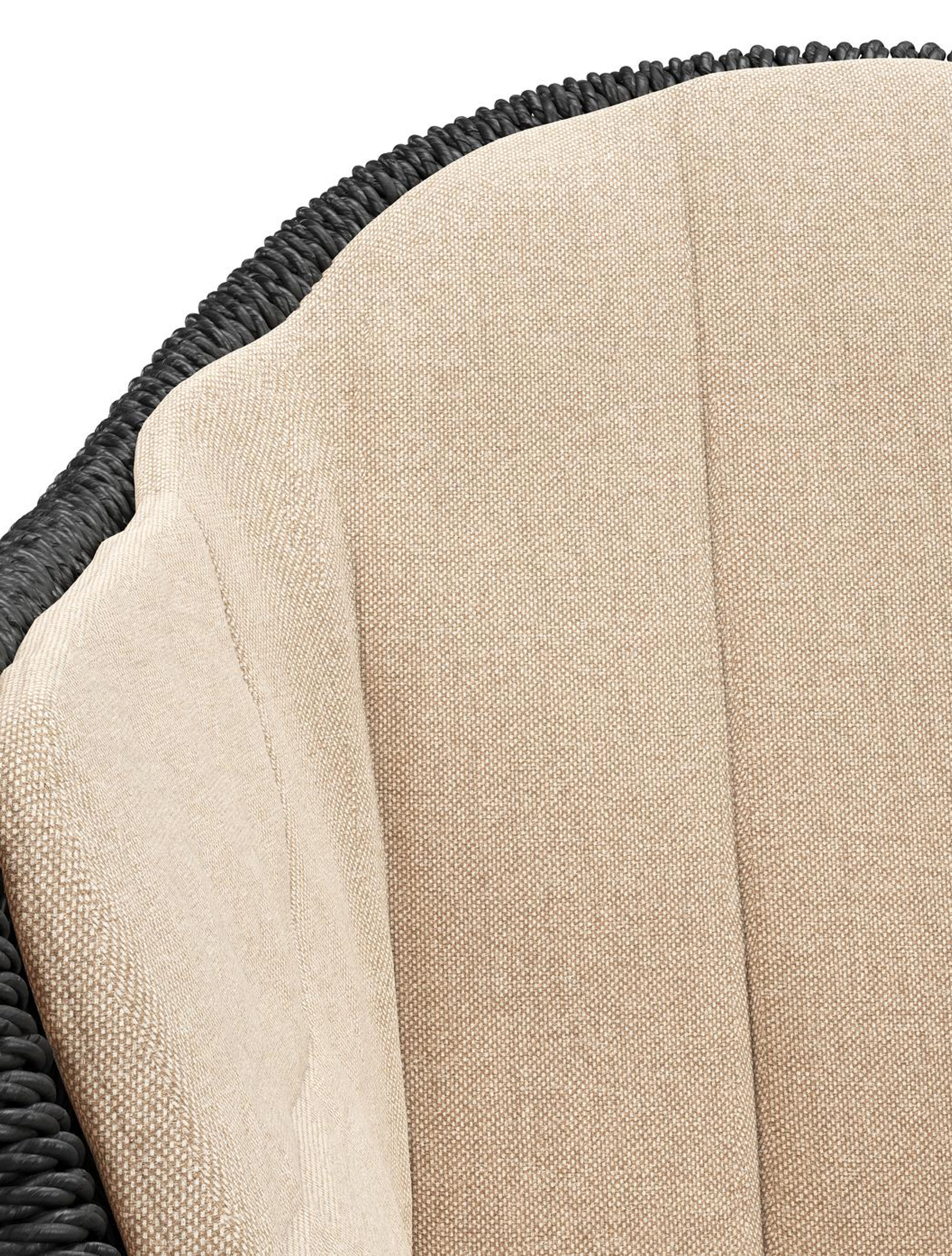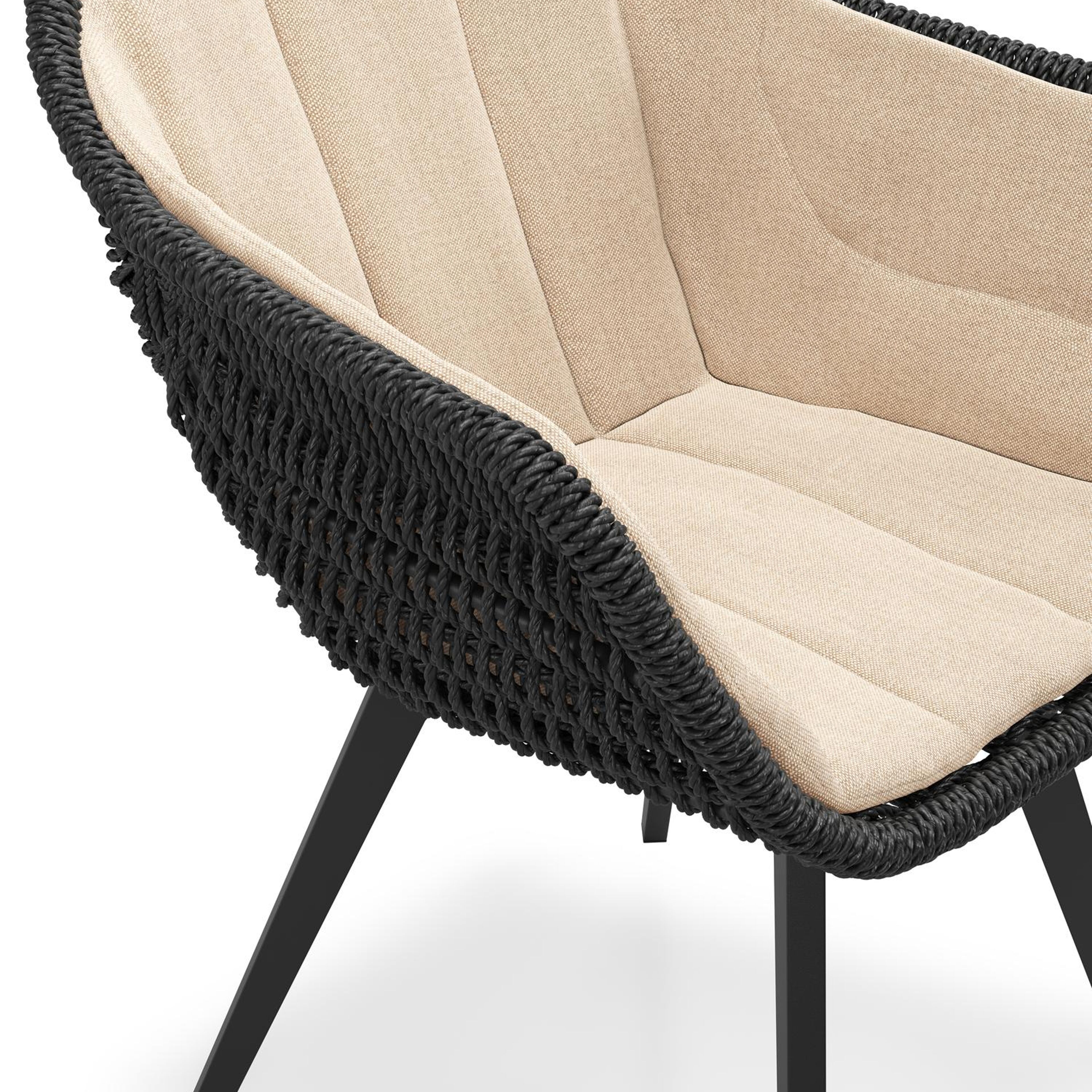 Pagino tuinstoel in zwart aluminium en zwart ronde wicker met zitkussen in All Weather Sunbrella® Luxe Natte Heather Beige | Exterioo tuinmeubelen