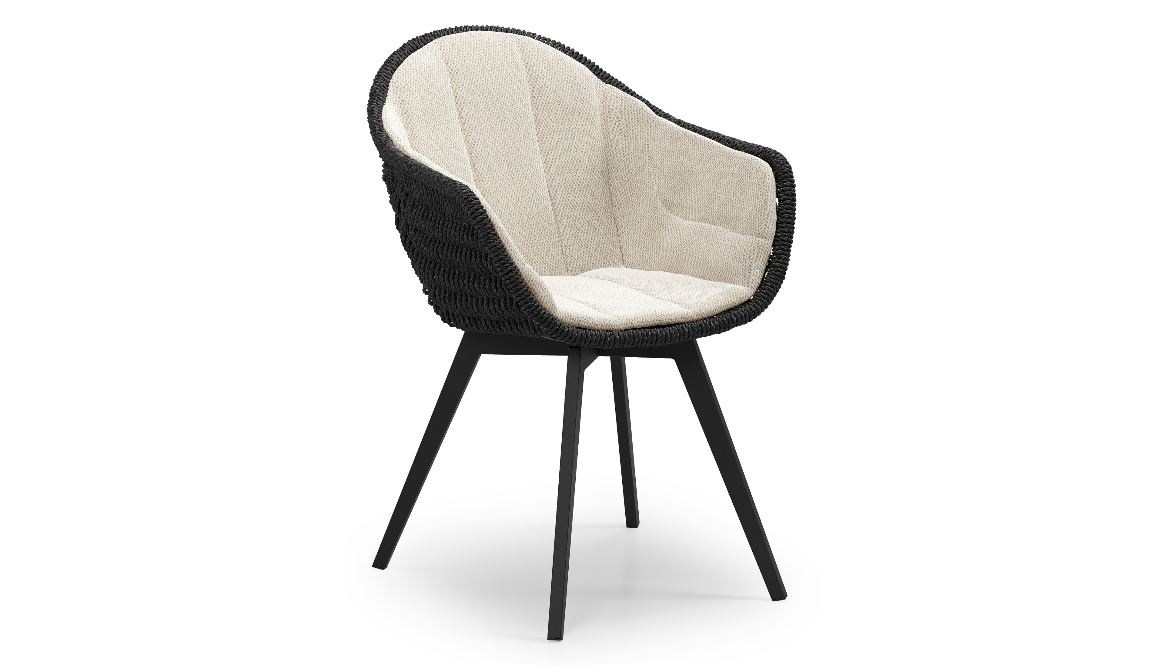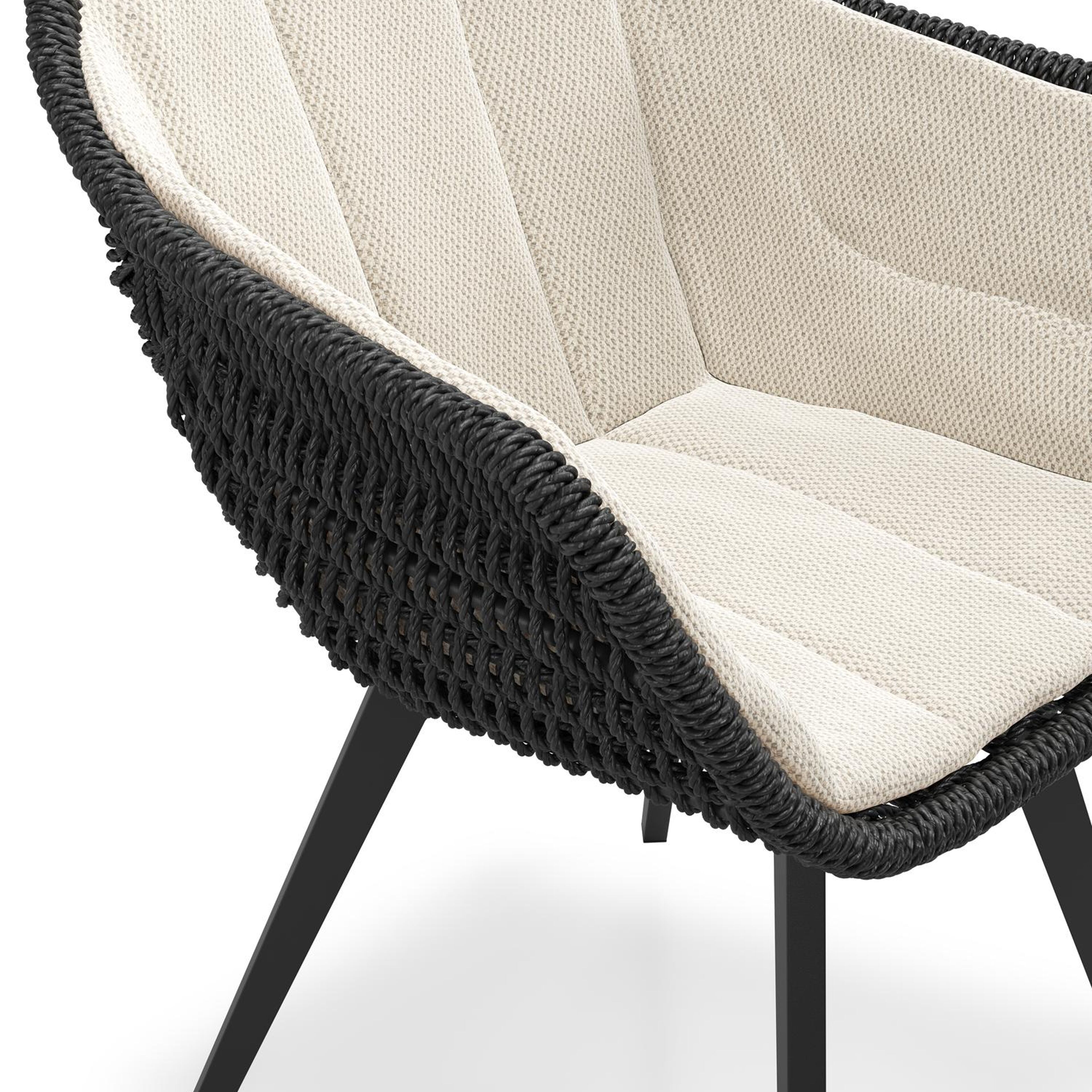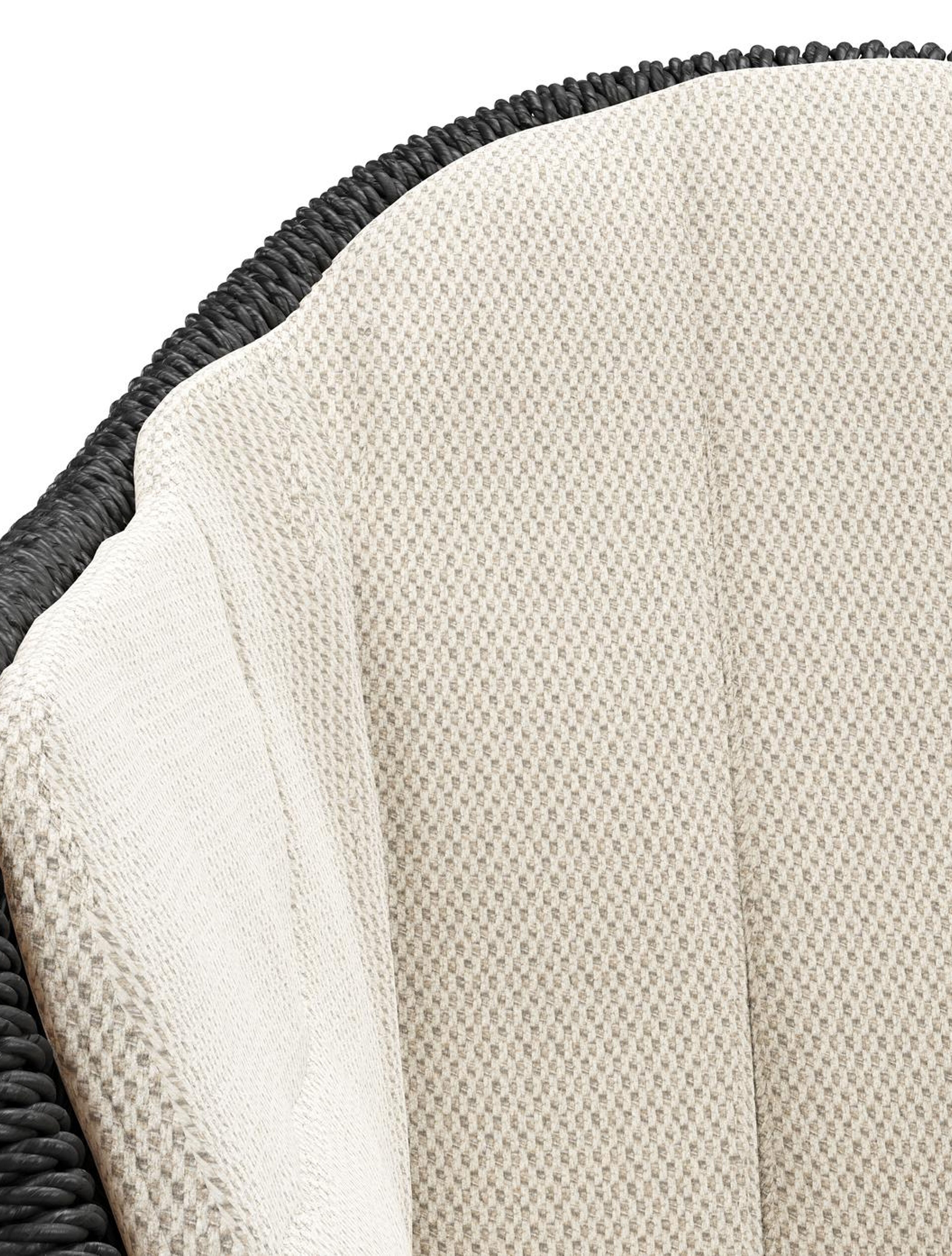 Pagino tuinstoel in zwart aluminium en zwart ronde wicker met zitkussen in All Weather Sunbrella® Luxe Lopi Marble | Exterioo tuinmeubelen
