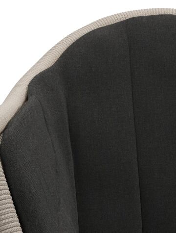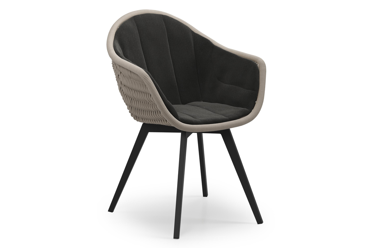 Pagino tuinstoel in zwart aluminium en beige verticaal geweven ronde rope met zitkussen in All Weather Sunbrella® Luxe Natte Sooty | Exterioo