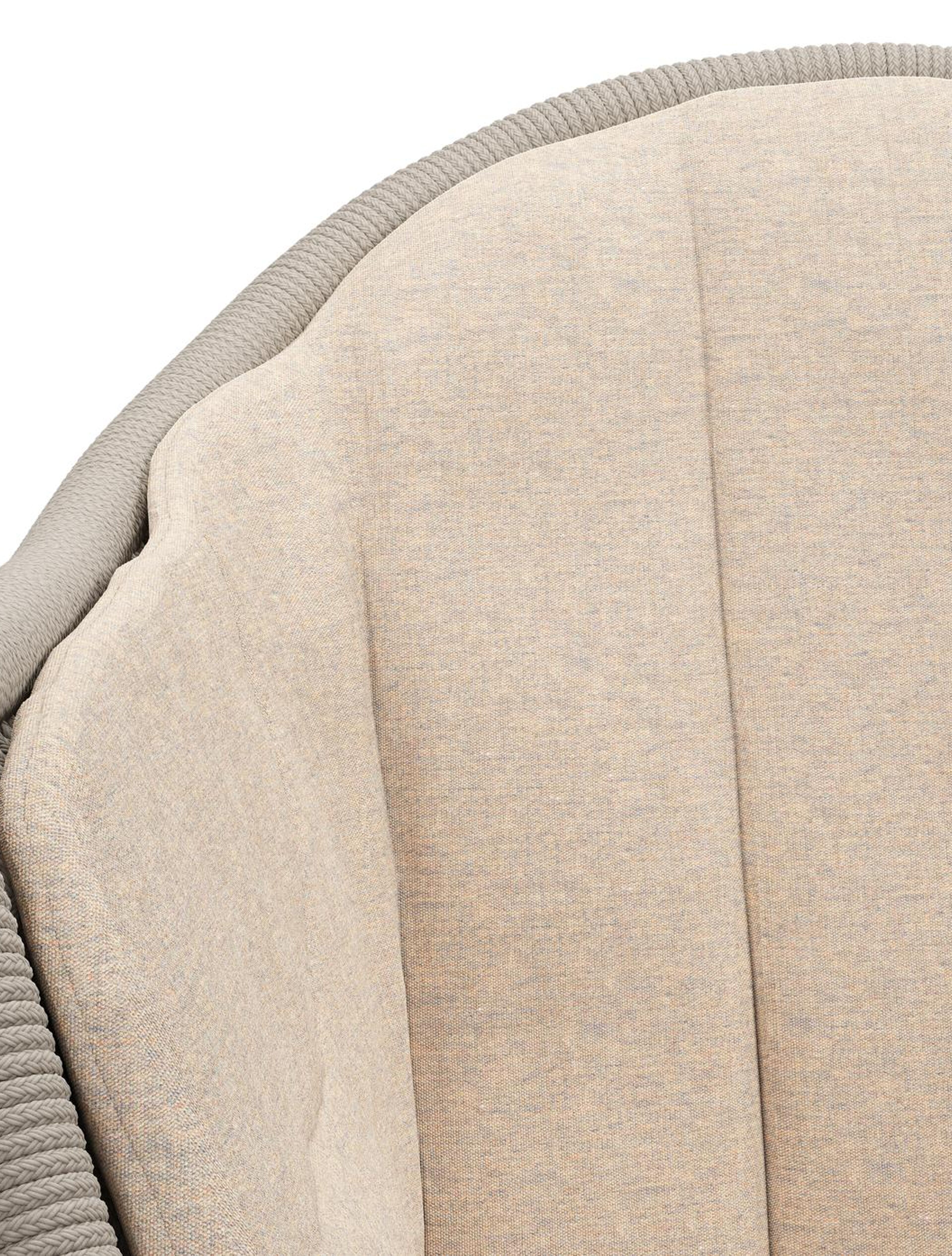 Pagino tuinstoel in zwart aluminium en beige verticaal geweven ronde rope met zitkussen in All Weather Sunbrella® Luxe Heritage Papyrus | Exterioo tuinmeubelen