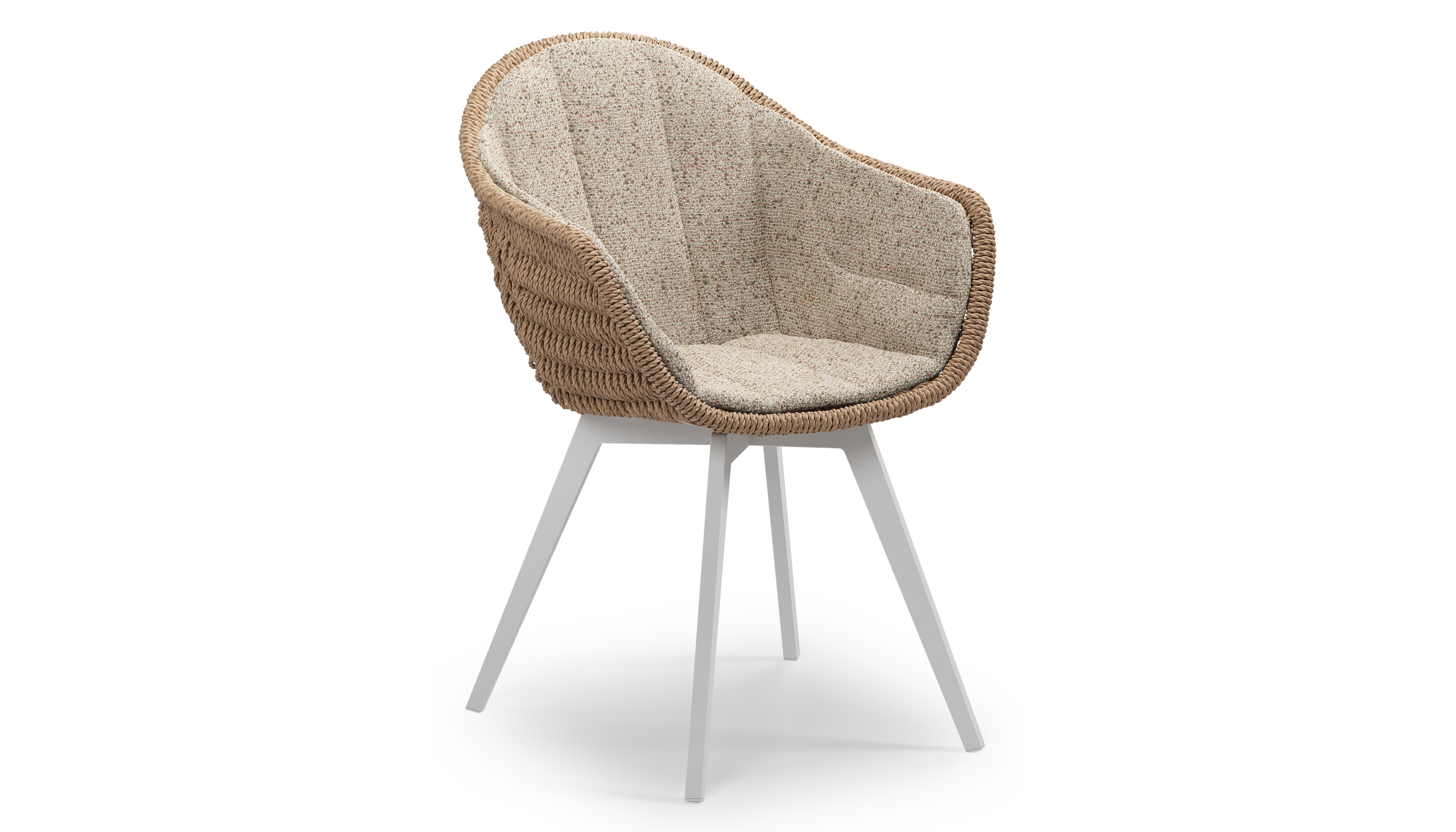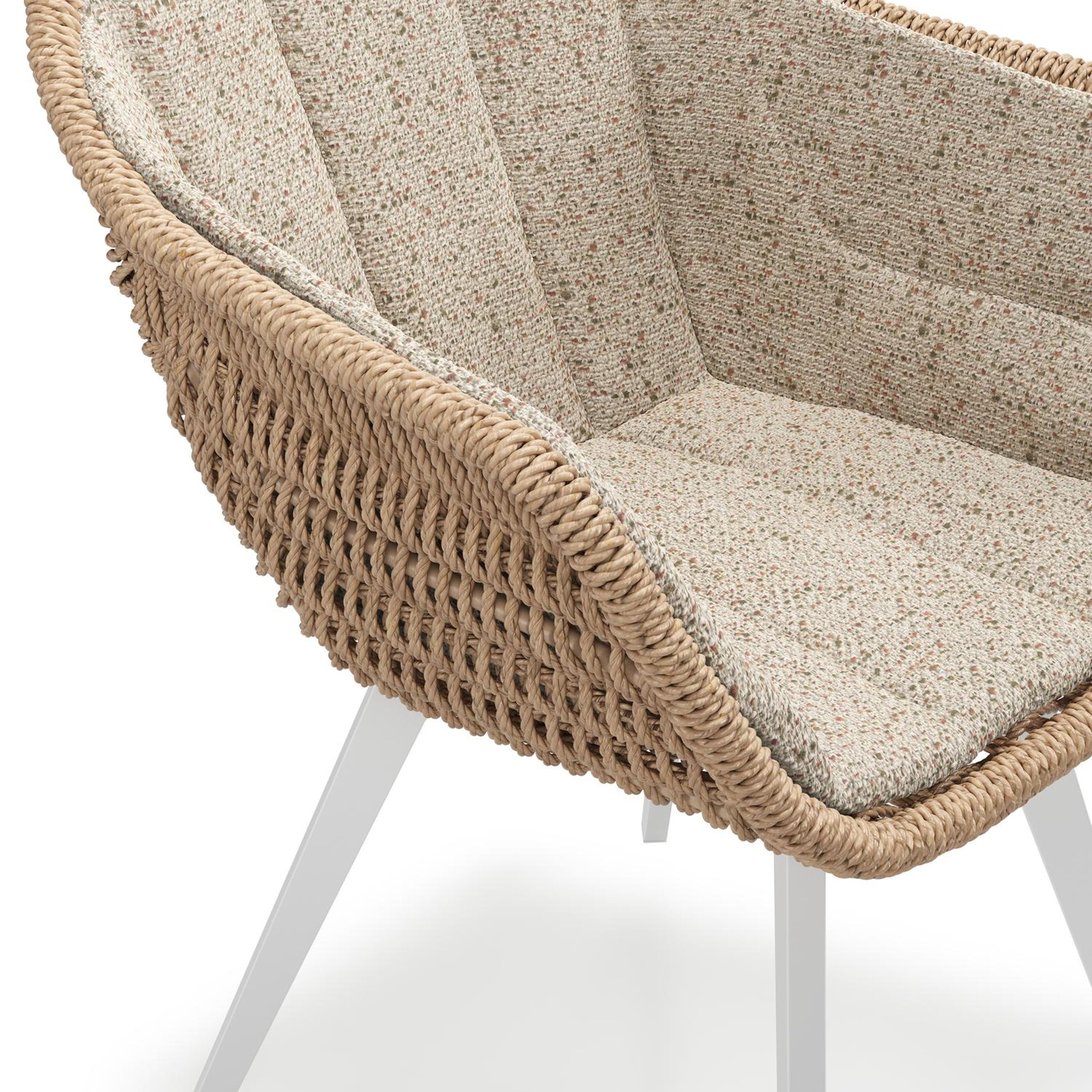 Pagino tuinstoel in wit aluminium en naturel ronde wicker met zitkussen in All Weather Cosytica Bora Jungle | Exterioo tuinmeubelen